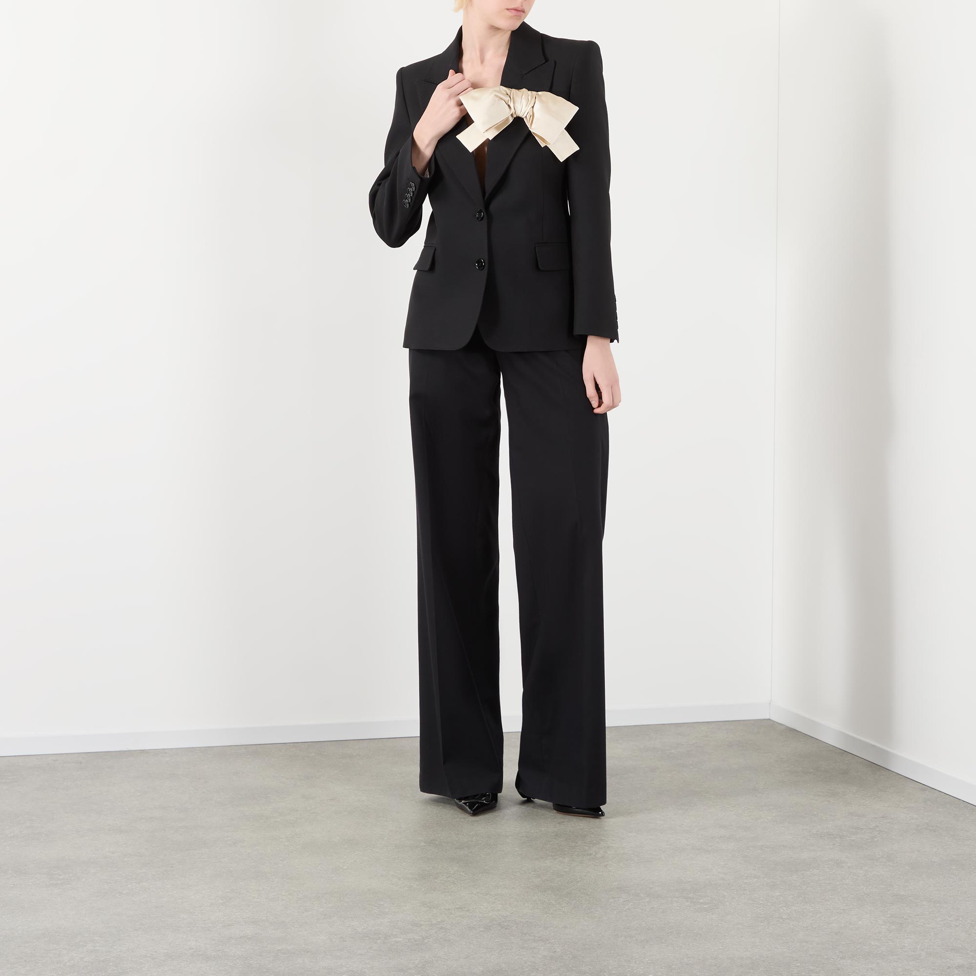 Valentino's SS26 collection is a study in modern romanticism, where fluid elegance and precise tailoring coexist with effortless ease, take this blazer. Spun from a wool-silk blend and framed by a peak lapel collar, the single breasted design is distinguished by a maxi bow appliqué, fastening at the front with a button placket and boasting two hip flap pockets to store your essentials.