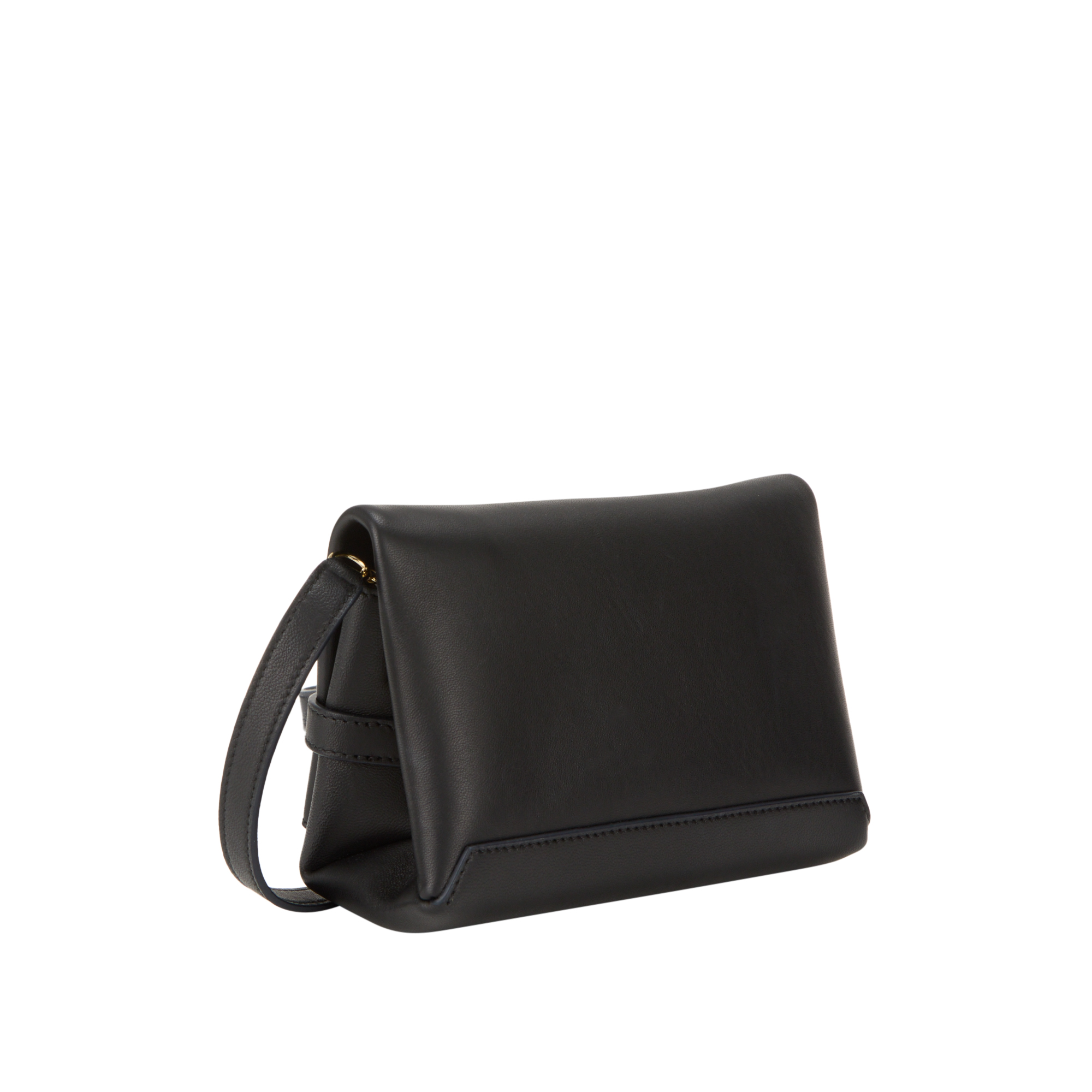 - Envelope form, front strap with chain-link detail in gold-tone metal, fine brand logo in gold-tone lettering, clutch hold, detachable strap