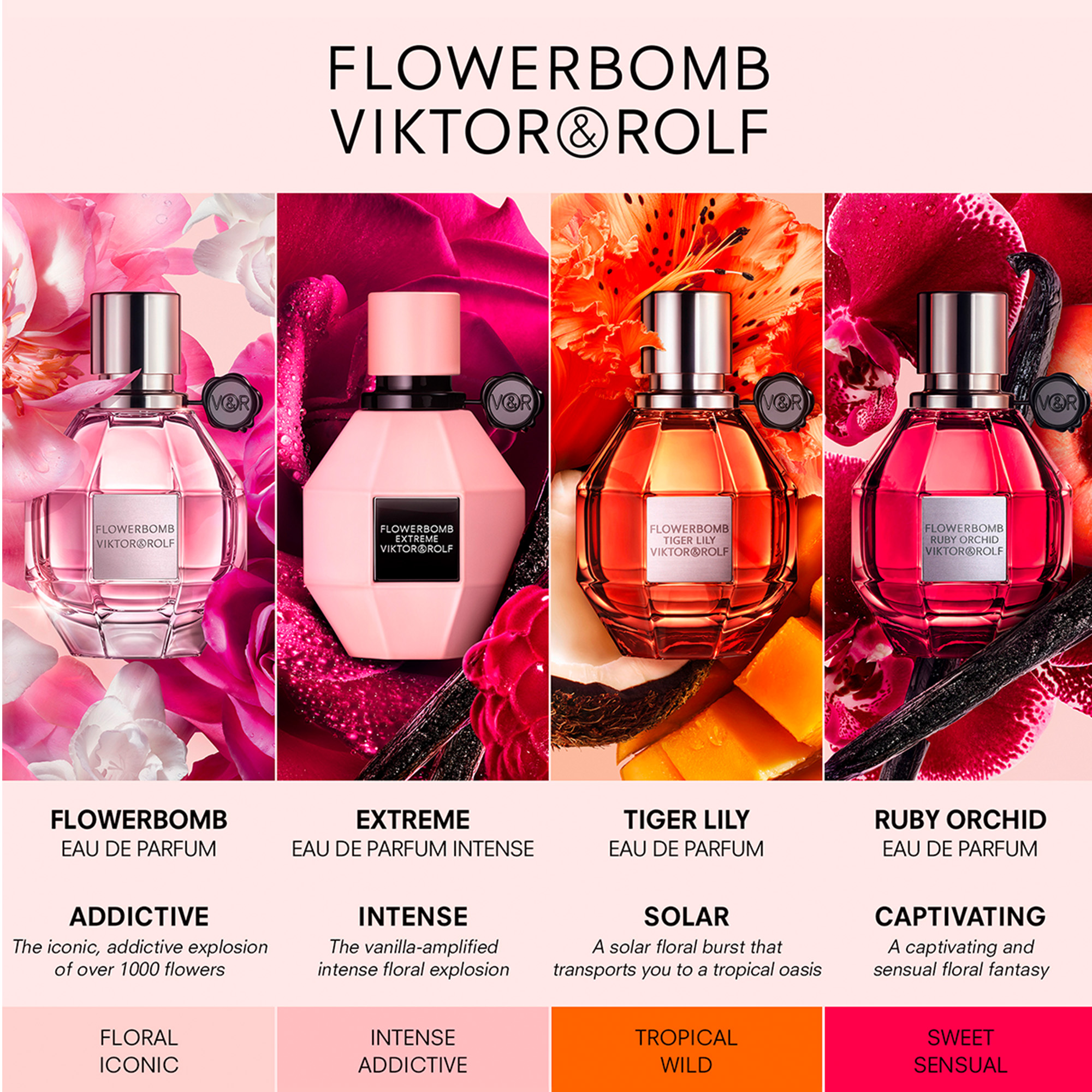 Are you ready for a floral explosion? Discover a floral explosion with Viktor&Rolf’s iconic Flowerbomb. Transport yourself or a loved one to a world of floral fantasy Experience the iconic original female fragrance by Viktor&Rolf, a sensory explosion like no other. Be engulfed by the addictive floral notes and immerse your senses with the warm woody undertones as the diamond grenade bottle erupts into a whirlwind of sweet sensations, transporting you to a world of floral fantasy.