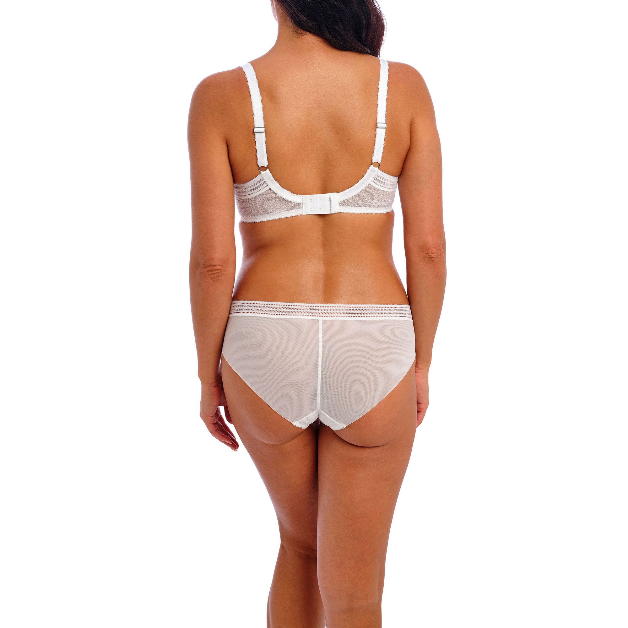 - Stretch-fused lace detailing, full back coverage, stretch-fused mesh, side panels, decorative waist elastic, two-ply mesh back