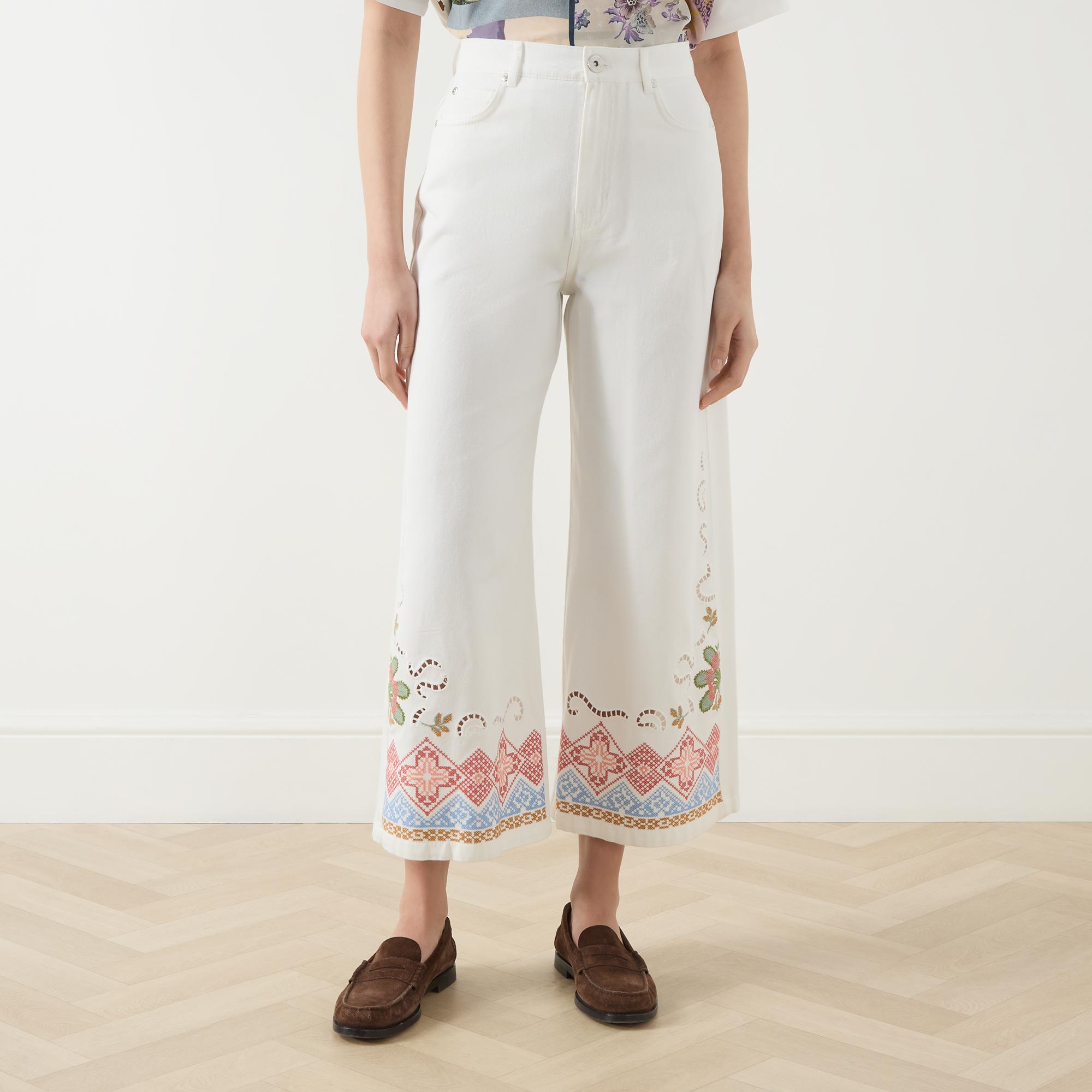 WEEKEND MAX MARA Adunco Embroidered Cropped Wide Leg Jeans