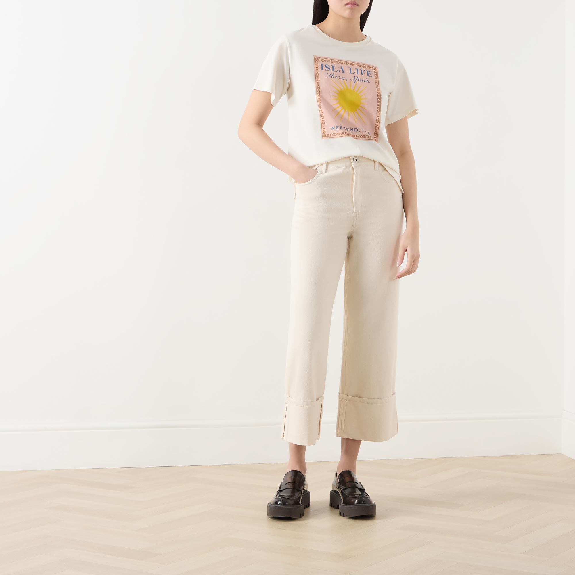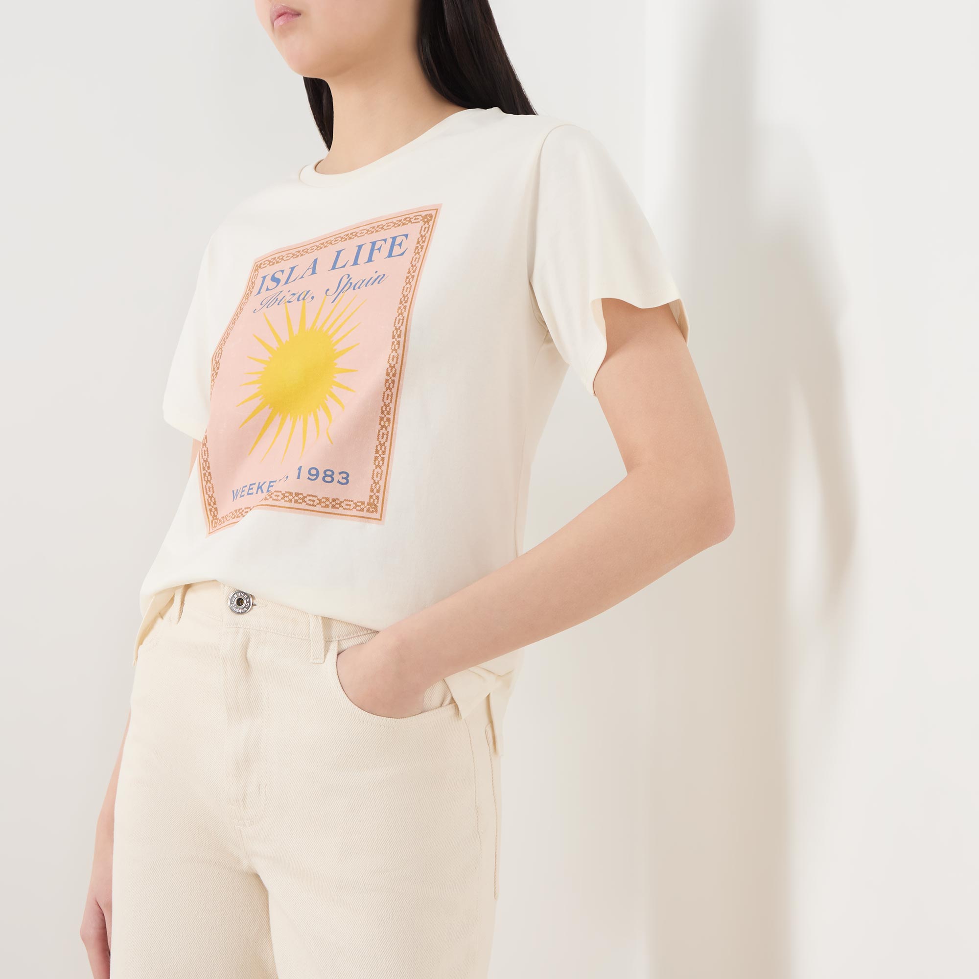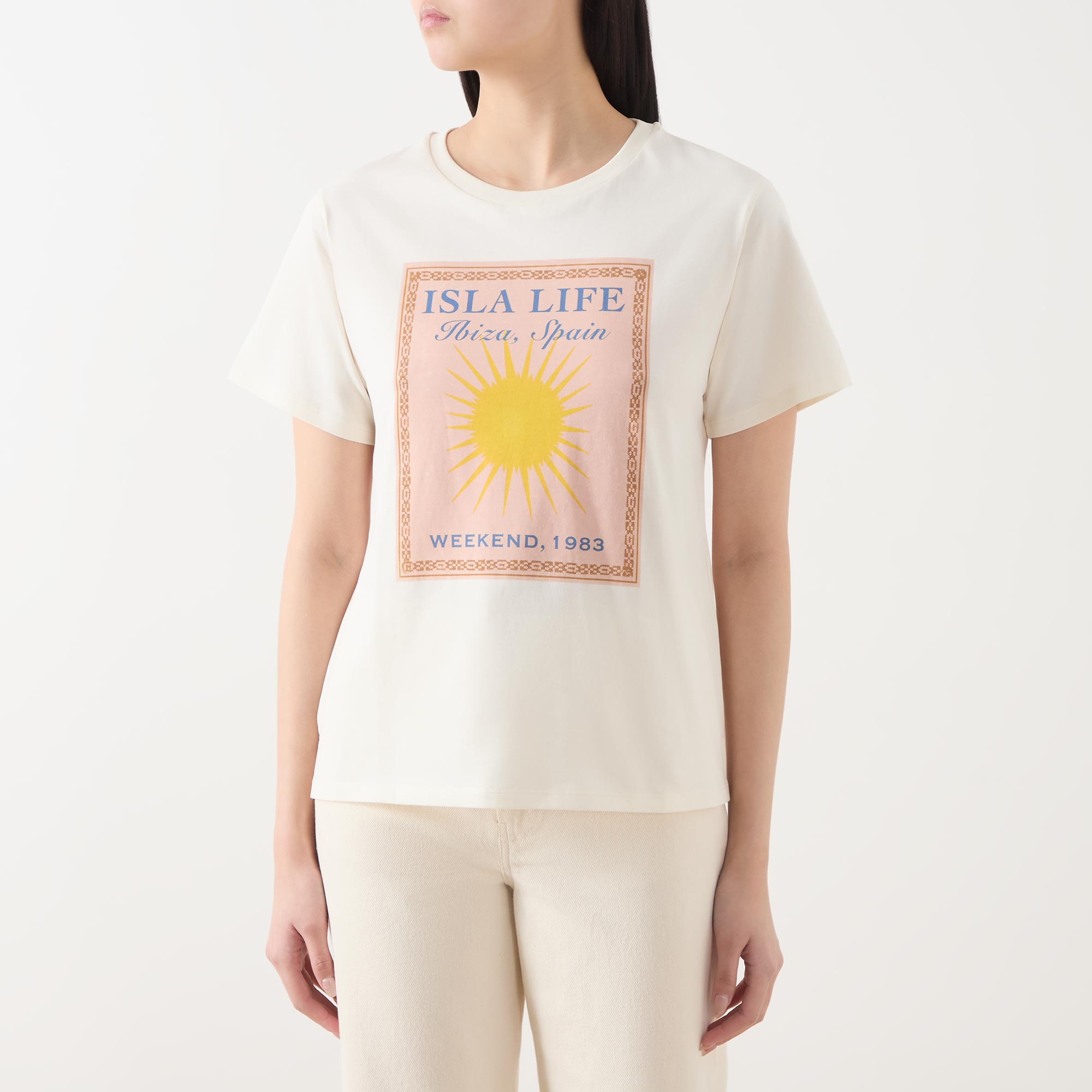 • Round neckline, short sleeves, straight hemline, isla life graphic print, butterfly logo details