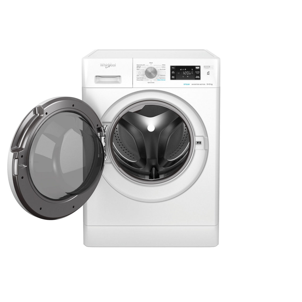 This Whirlpool Washer Dryer features: white Outstanding 10kg washing capacity. Spacious 6kg drying capacity. Exclusive 6th SENSE technology uses sensors within the drum to assess how dirty your laundry is, the cycle is automatically adapted, reducing detergent wastage. The sensors also detect the temperature and humidity in each load, adapting the cycle for super soft results while saving up to 50% in energy, water and time. A fast, resource-efficient 1400 revolutions per minute spin speed.