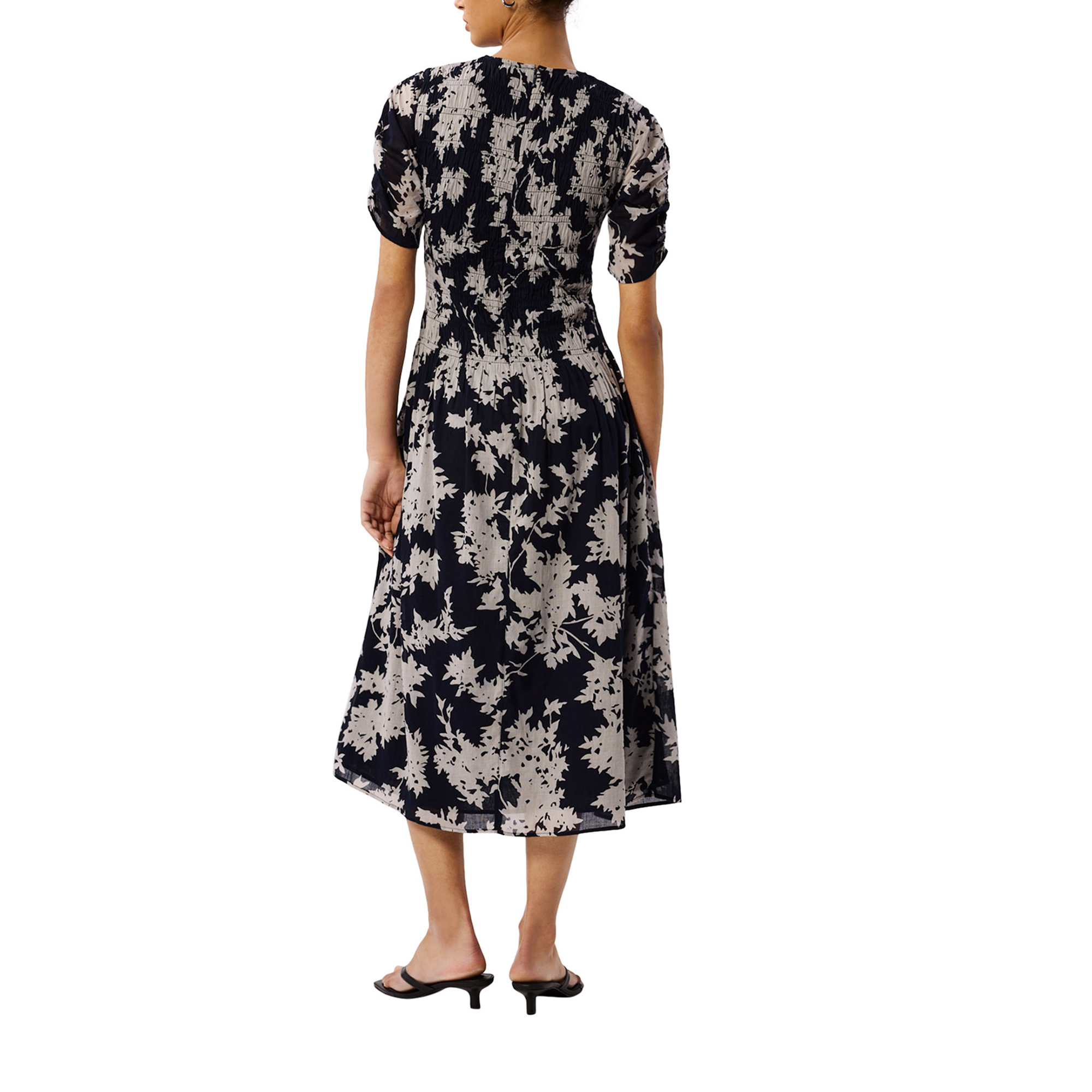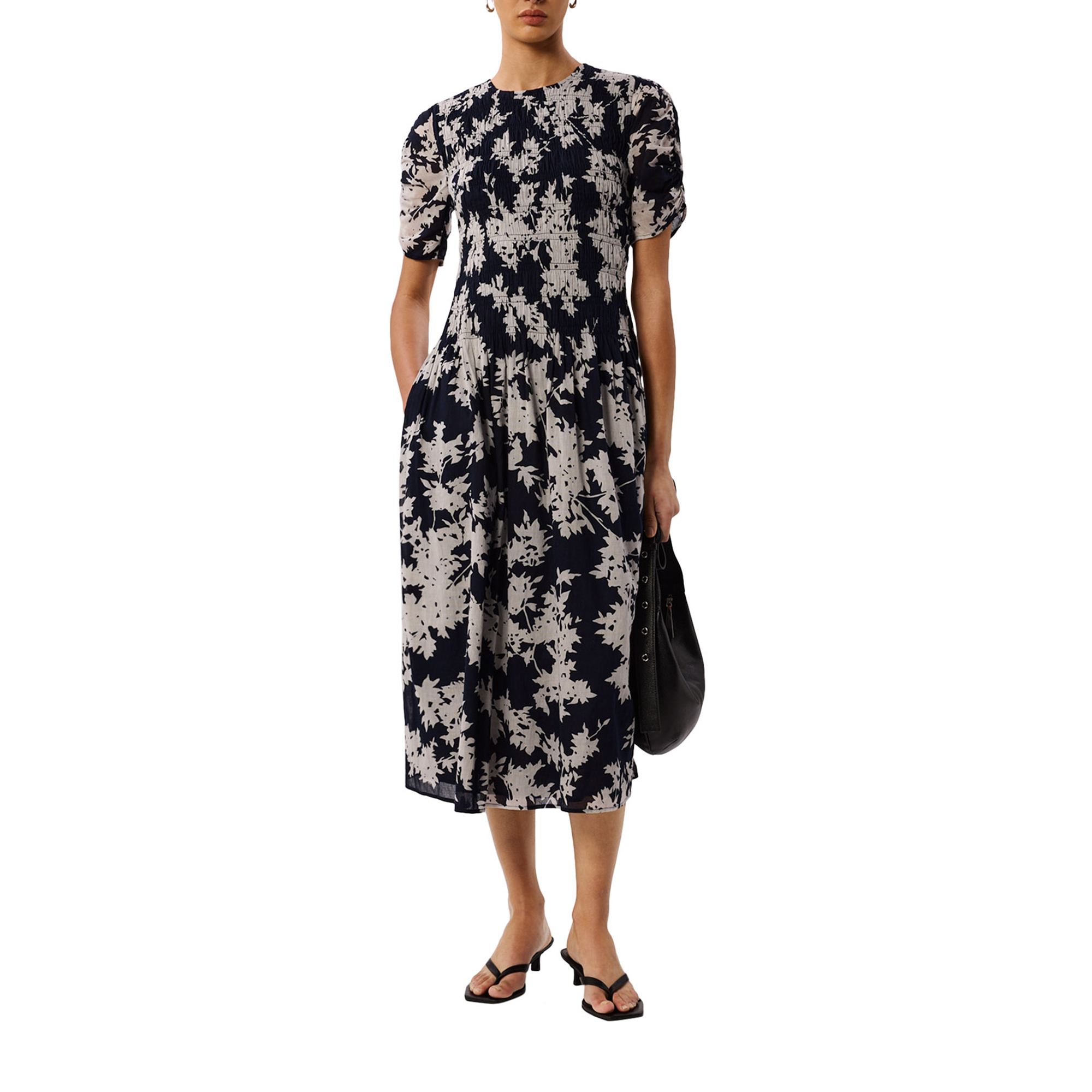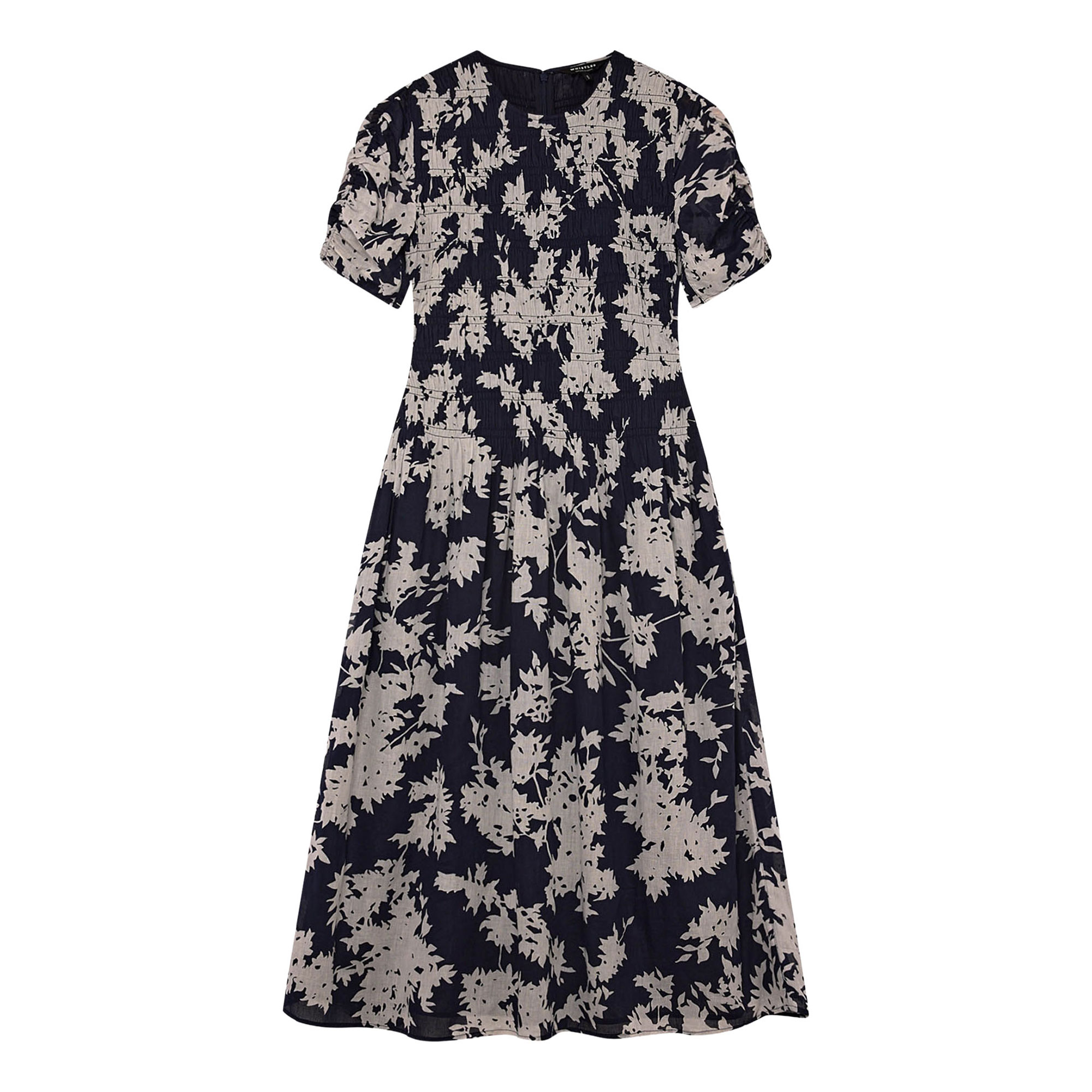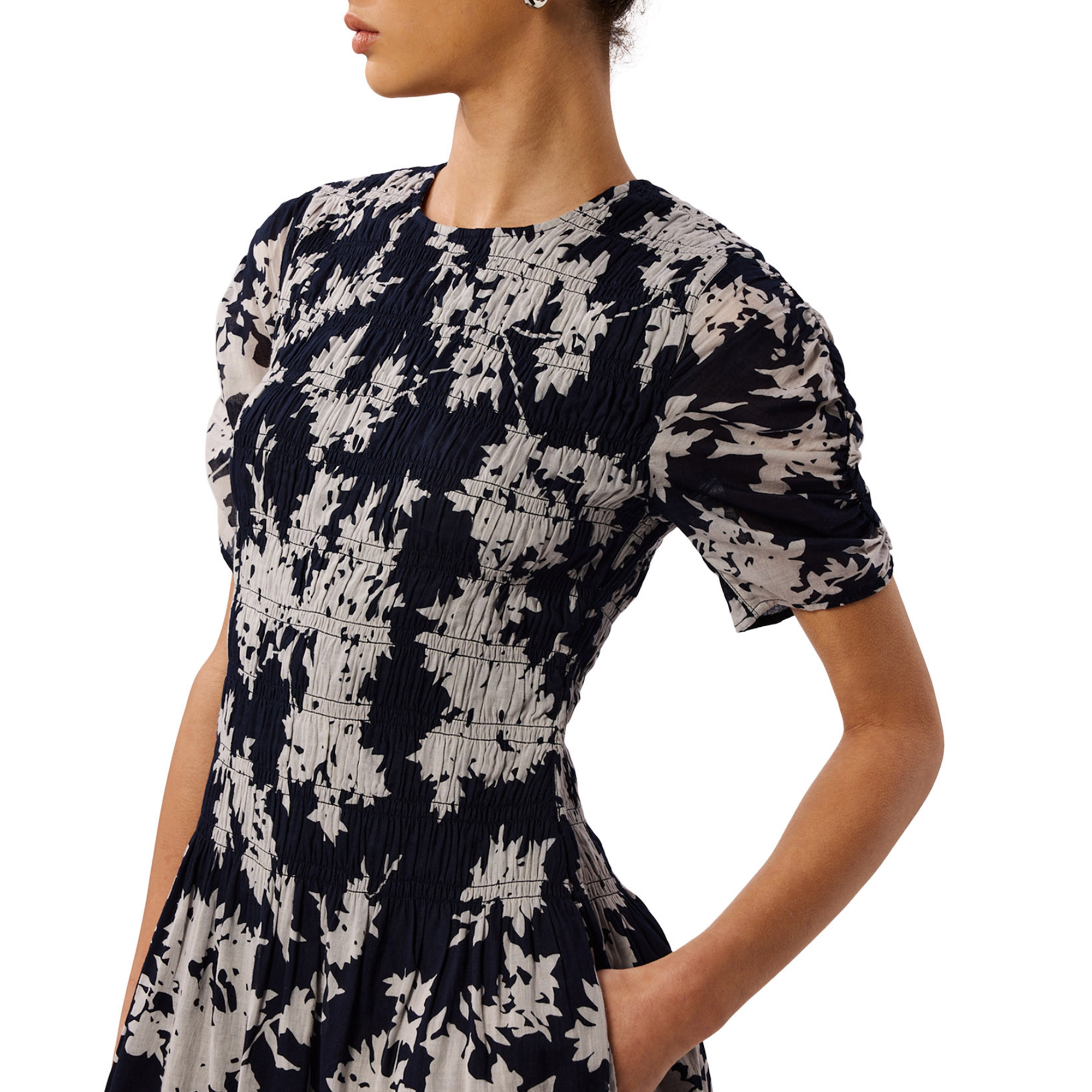 WHISTLES Avery Shadow Floral Smocked Flared Dress