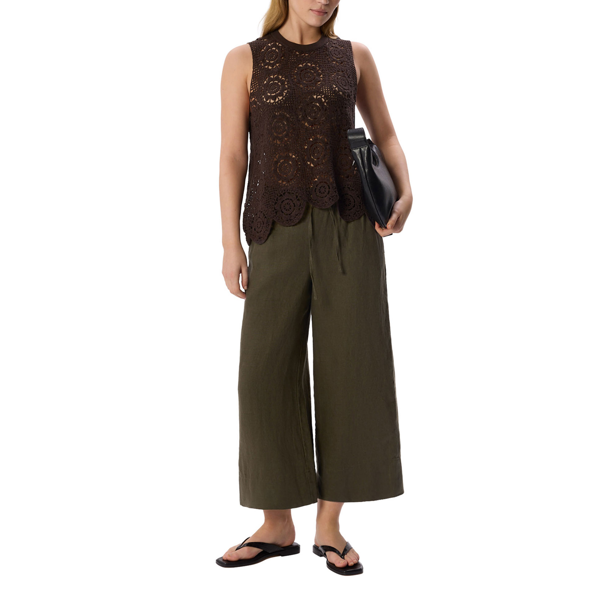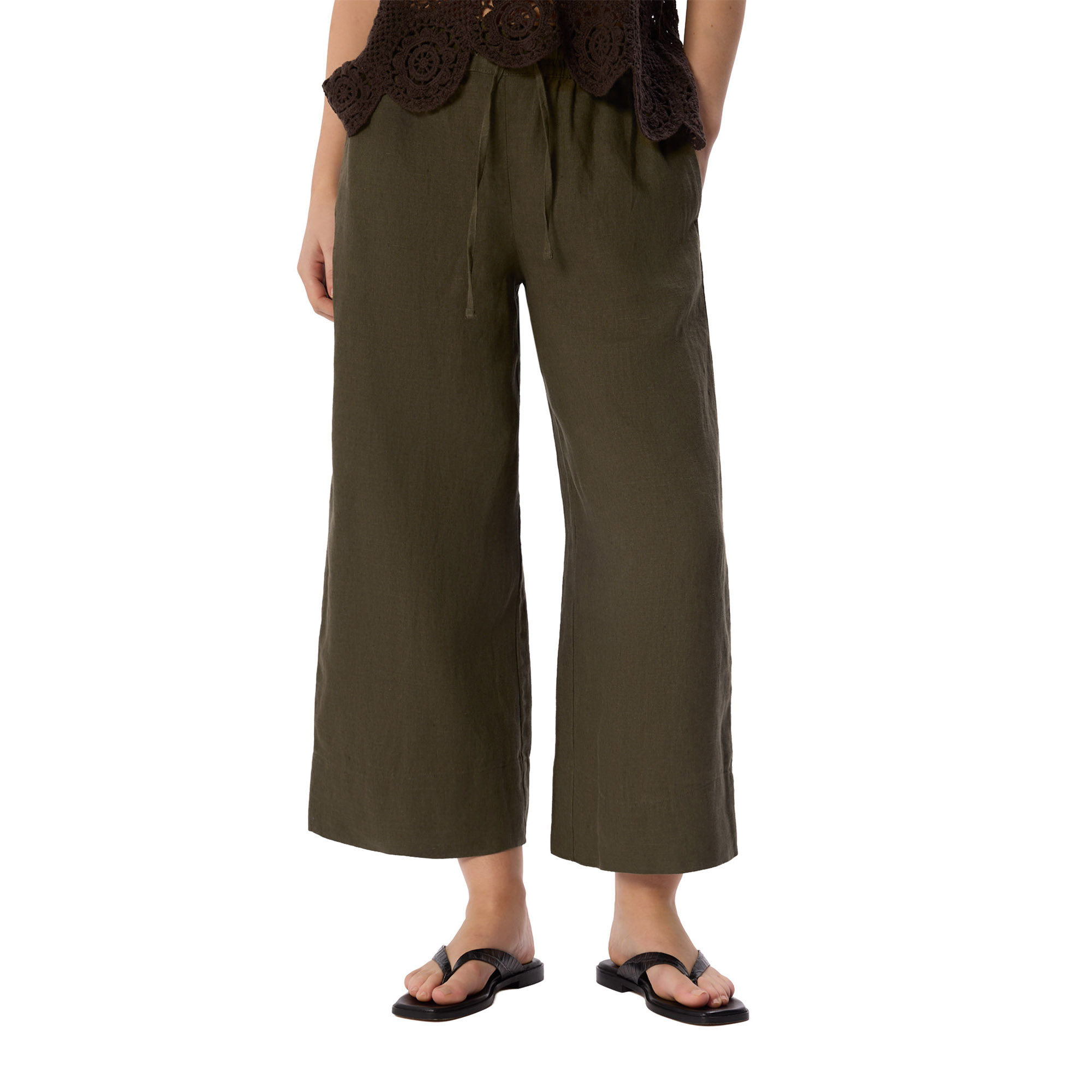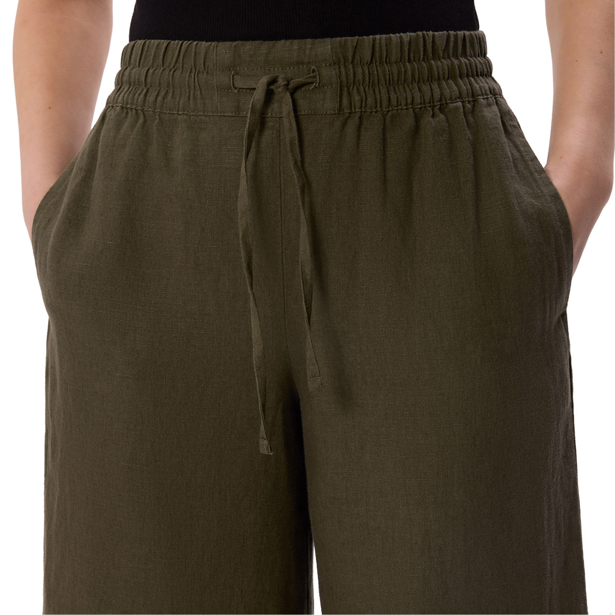 - Elasticated waistband, linen construction
