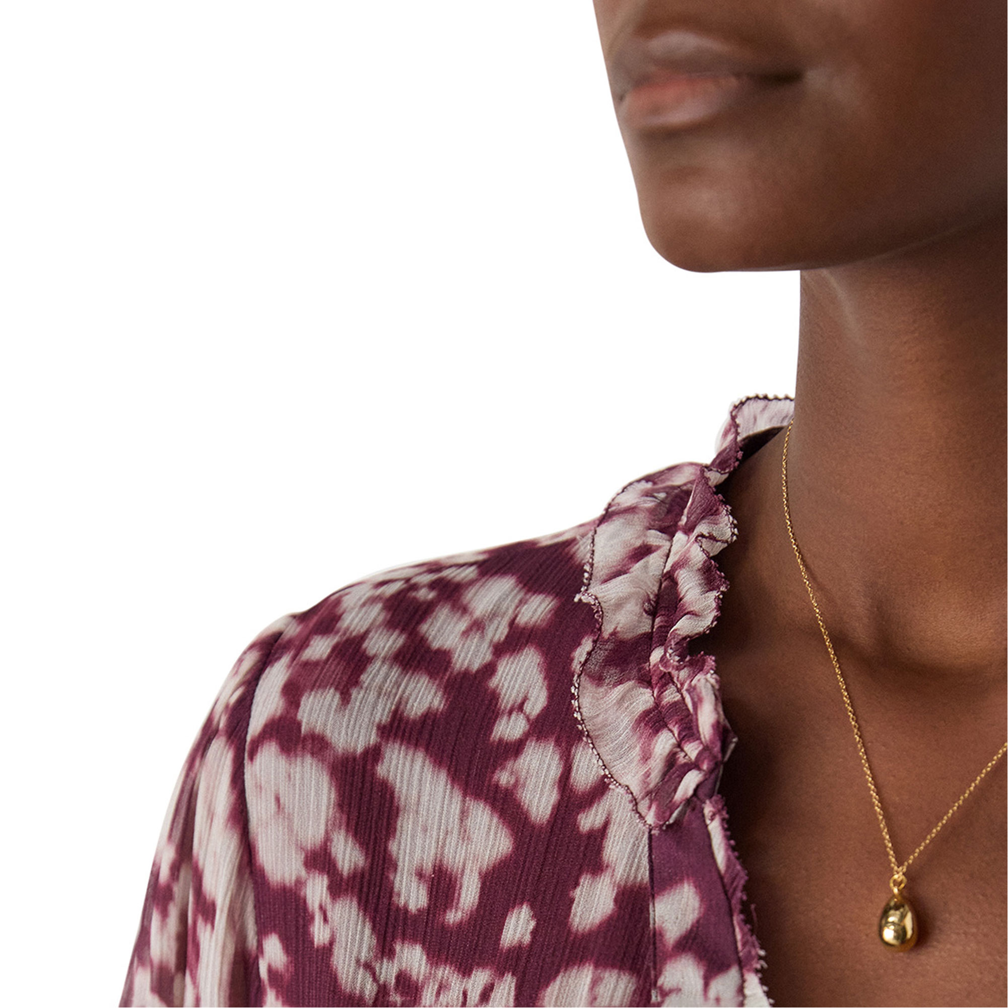 - V-neckline, frill details, cuffed button sleeves