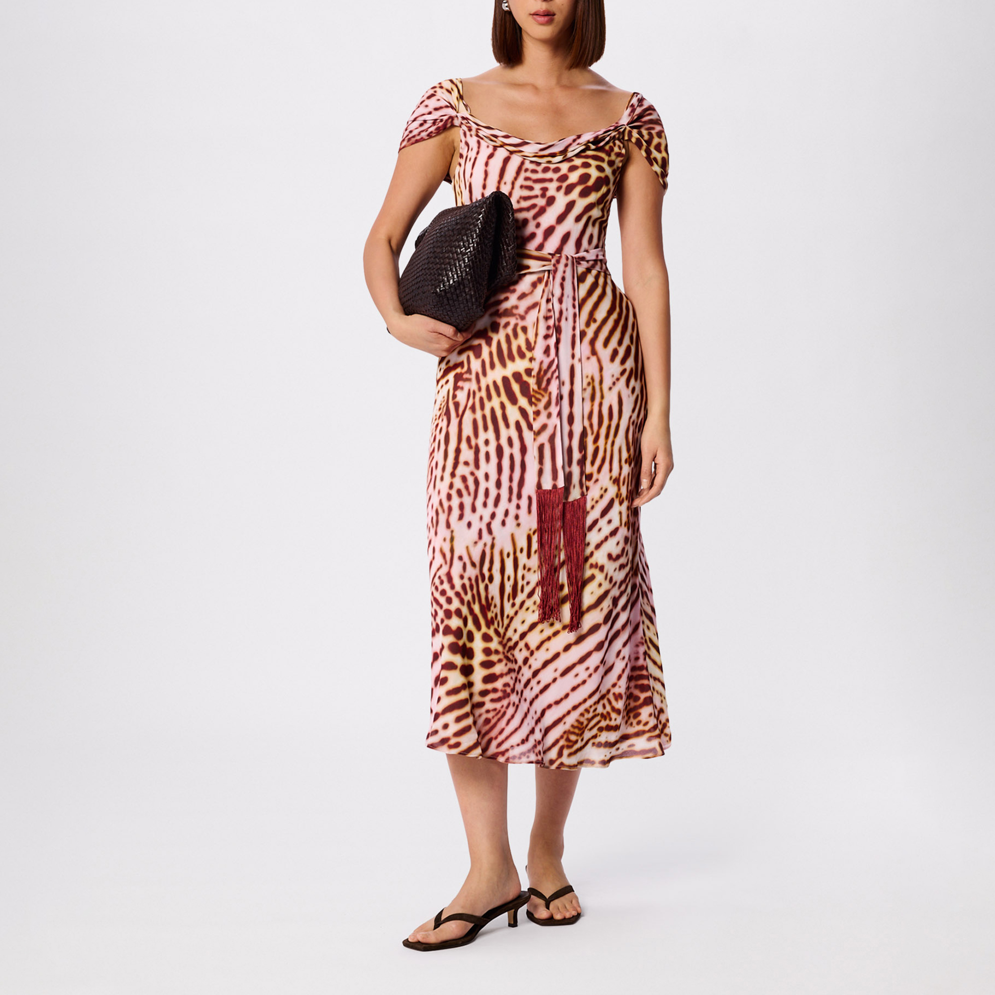• Midi length, sleeveless, bardot neckline