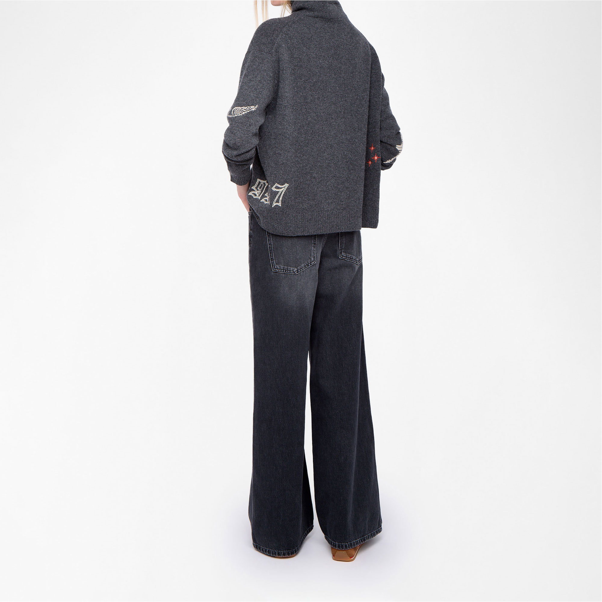 - Composition and Care: 100% cashmere. Hand wash or machine wash on a 20 degree wool cycle with a maximum spin speed of 400 rpm, do not wring, air dry flat, iron inside out at a maximum of 110 degrees, avoiding any customised details