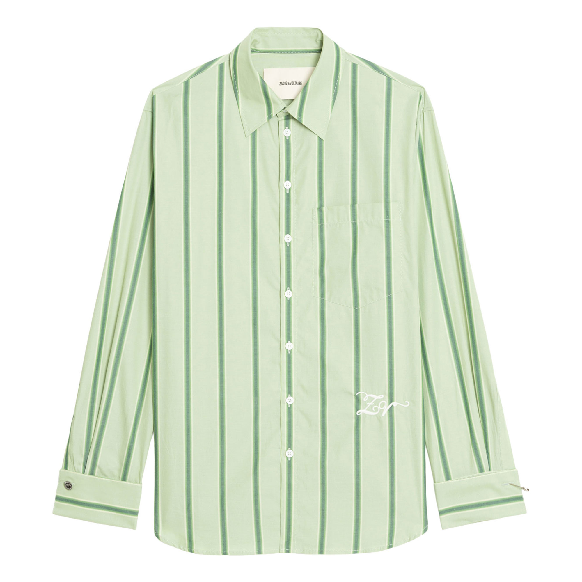 - Striped poplin, chest patch pocket, cuff and buttonhole embroidery