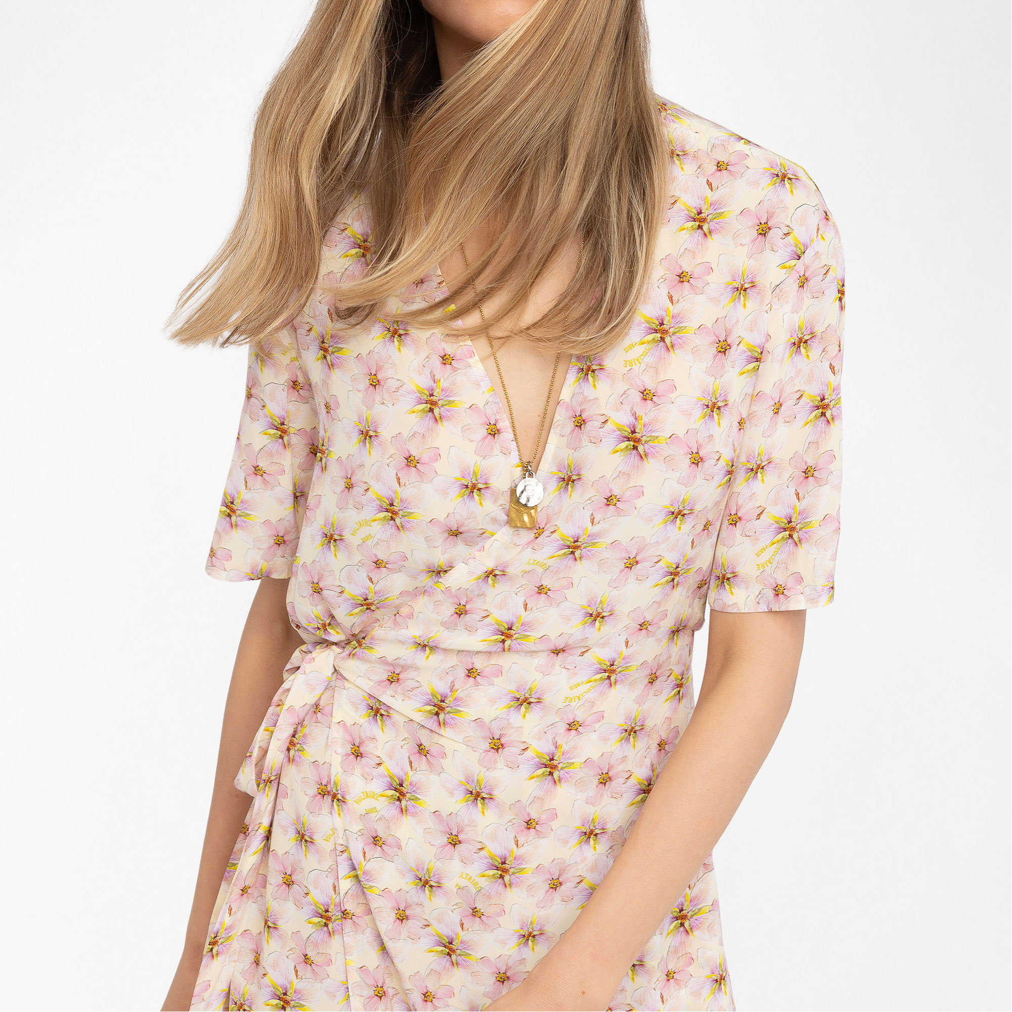 - Mid-length, asymmetric, printed, short sleeves, wrap-effect