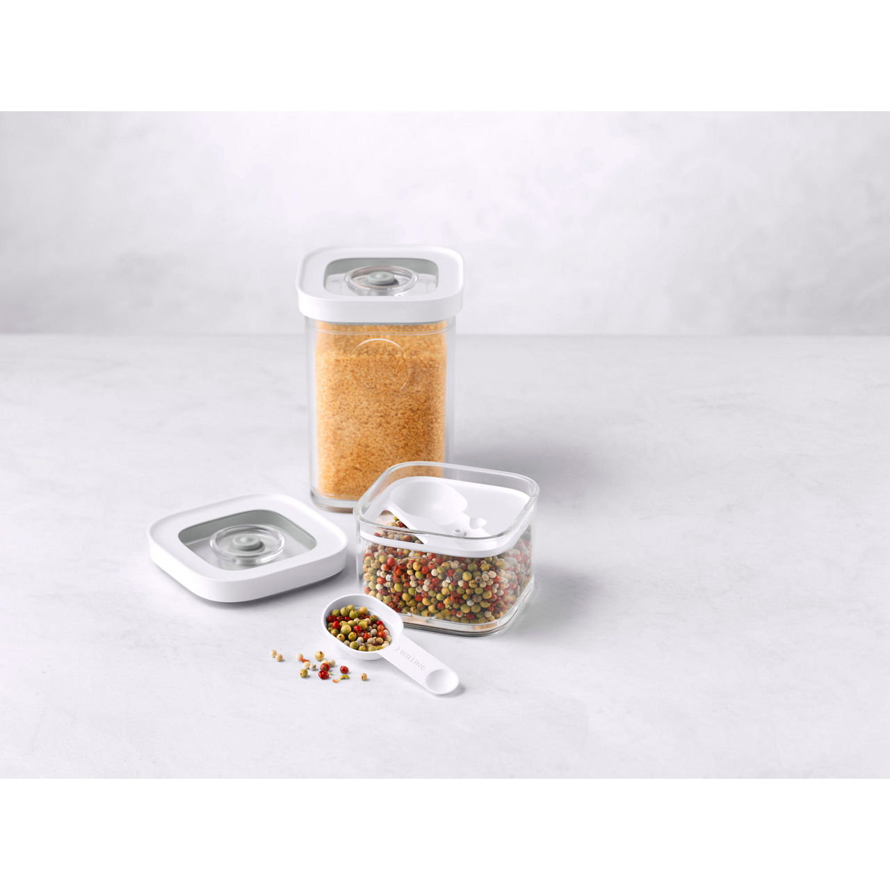 • For all ZWILLING FRESH & SAVE CUBE boxes in size S, 4-in-1 insert for measuring and dosing food, integrated measuring spoon with three measuring sizes, pouring opening