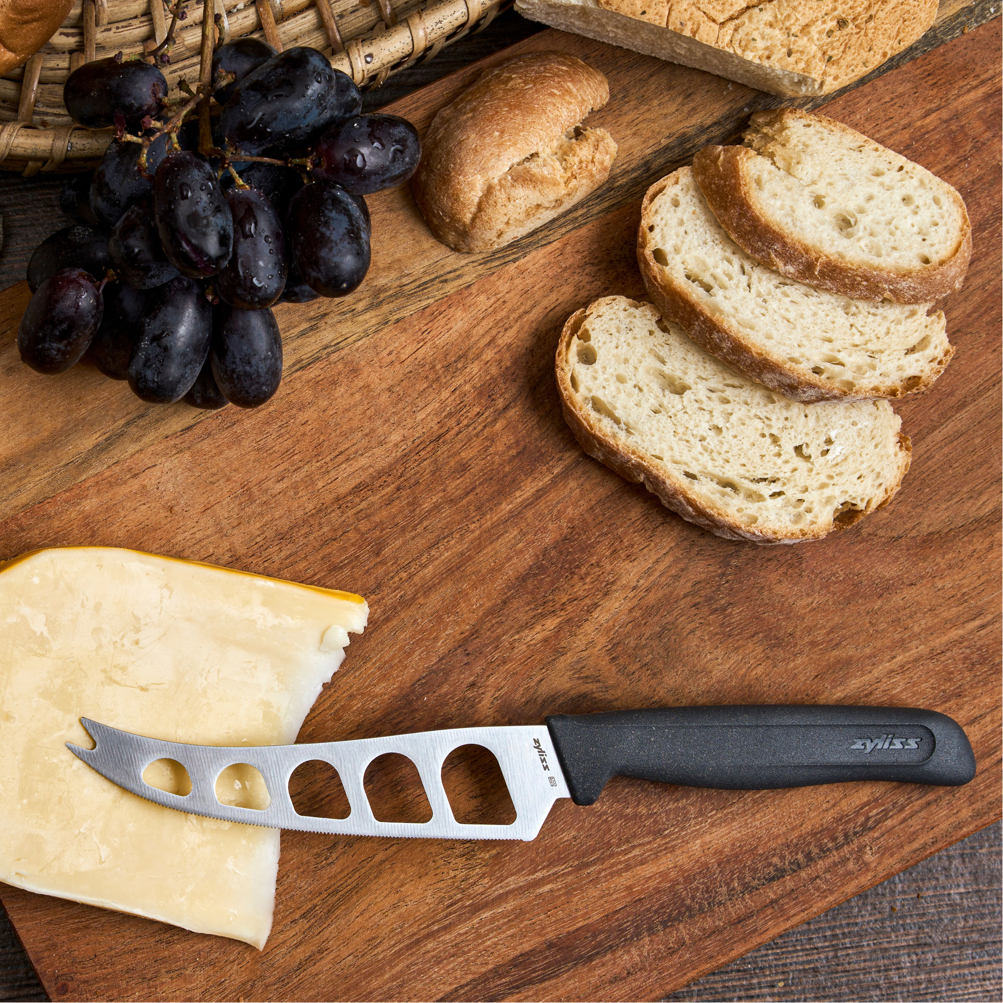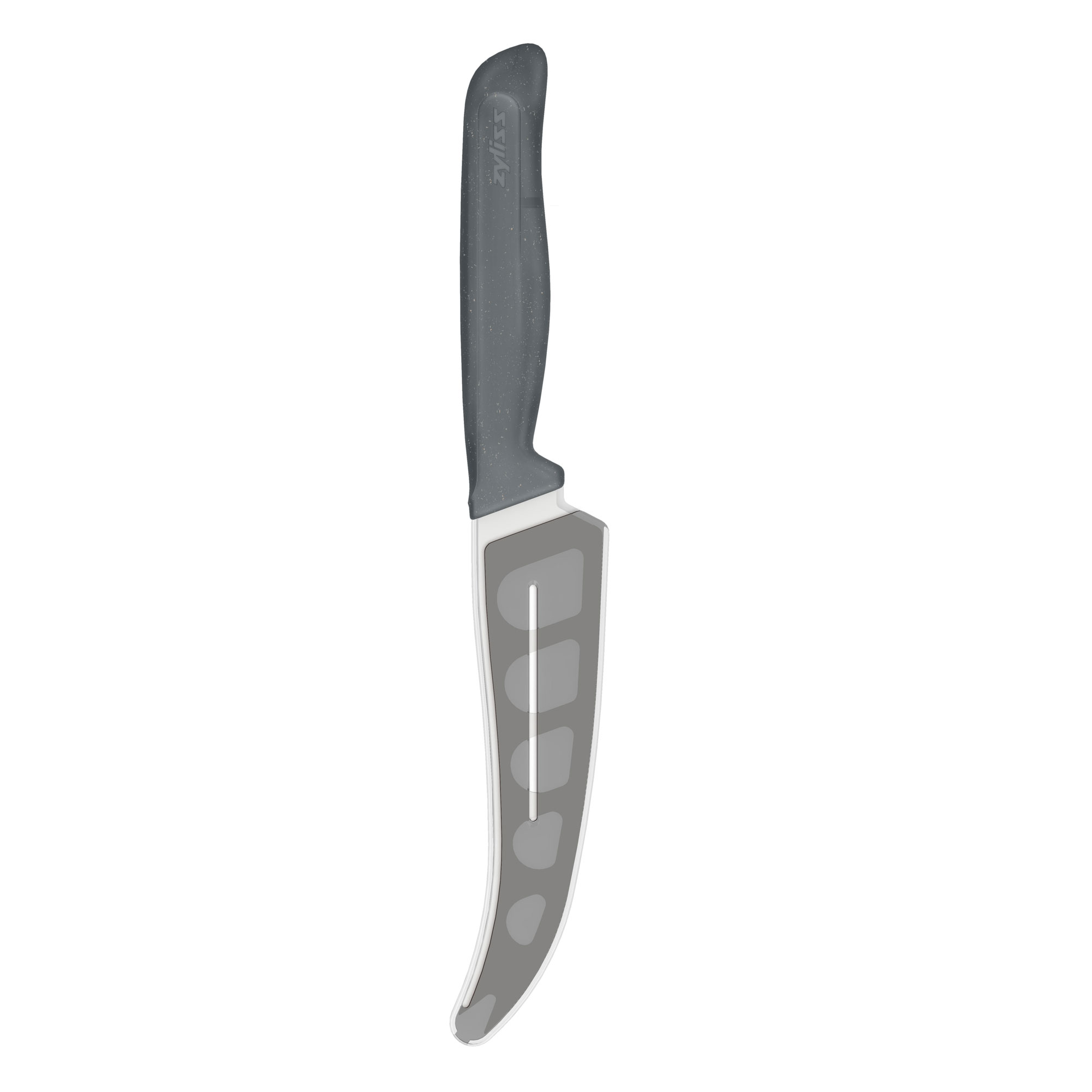 The Zyliss Cheese Knife is designed for clean, effortless slicing across a variety of cheeses - from soft Brie to firm Cheddar. Its stainless steel blade cuts smoothly without sticking, while the forked tip makes it easy to lift and serve. The handle, crafted from sustainable wheat straw material, reduces plastic use by up to 20% and offers a lightweight, comfortable grip. Ideal for everyday snacking, entertaining, or building the perfect cheese board. Backed by a 5-year Zyliss guarantee.