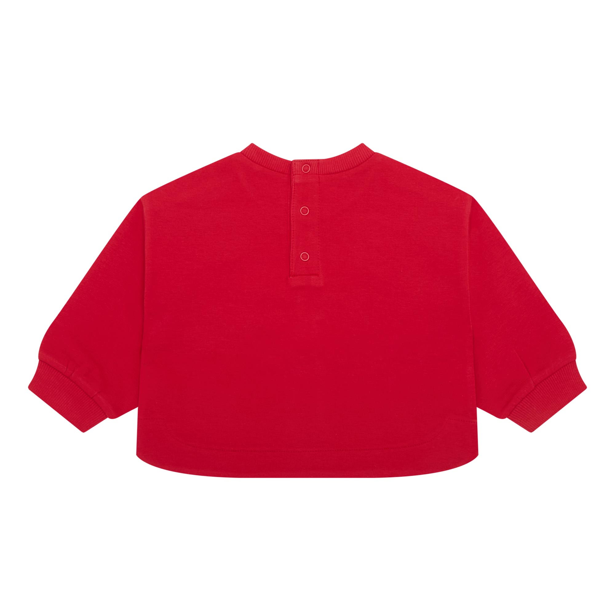 - Round neckline, long sleeves, ribbed trims, bonjour graphic at front, half-button fastening to the back
