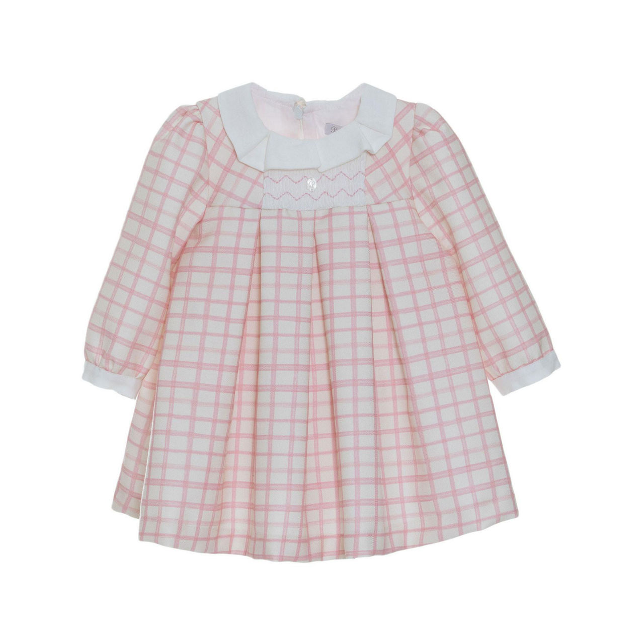 • Frill collar, long sleeve, zip fastening at rear, pleated details, buttoned cuffs, check pattern