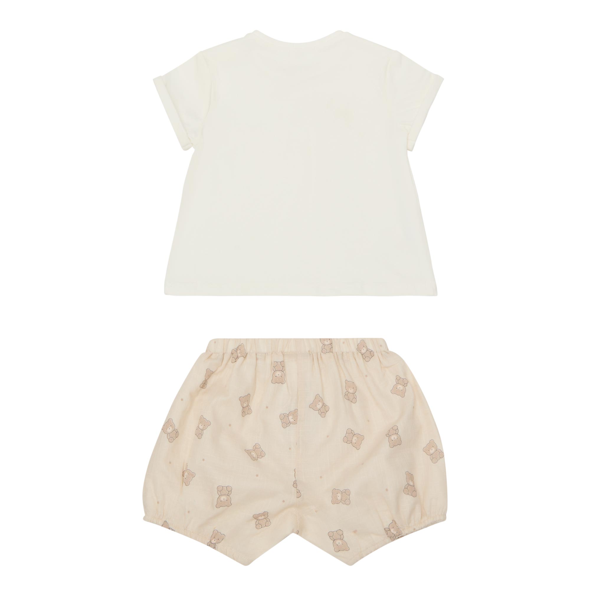 - Two-piece set: Top: Crew neckline, short sleeves, straight hem, Teddy Bear graphic on the front, tonal stitch detailing; Shorts: Straight-leg, elasticated waistband, elasticated hems, Teddy Bear printed design