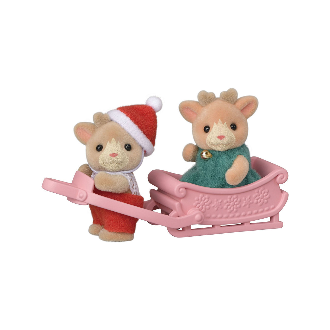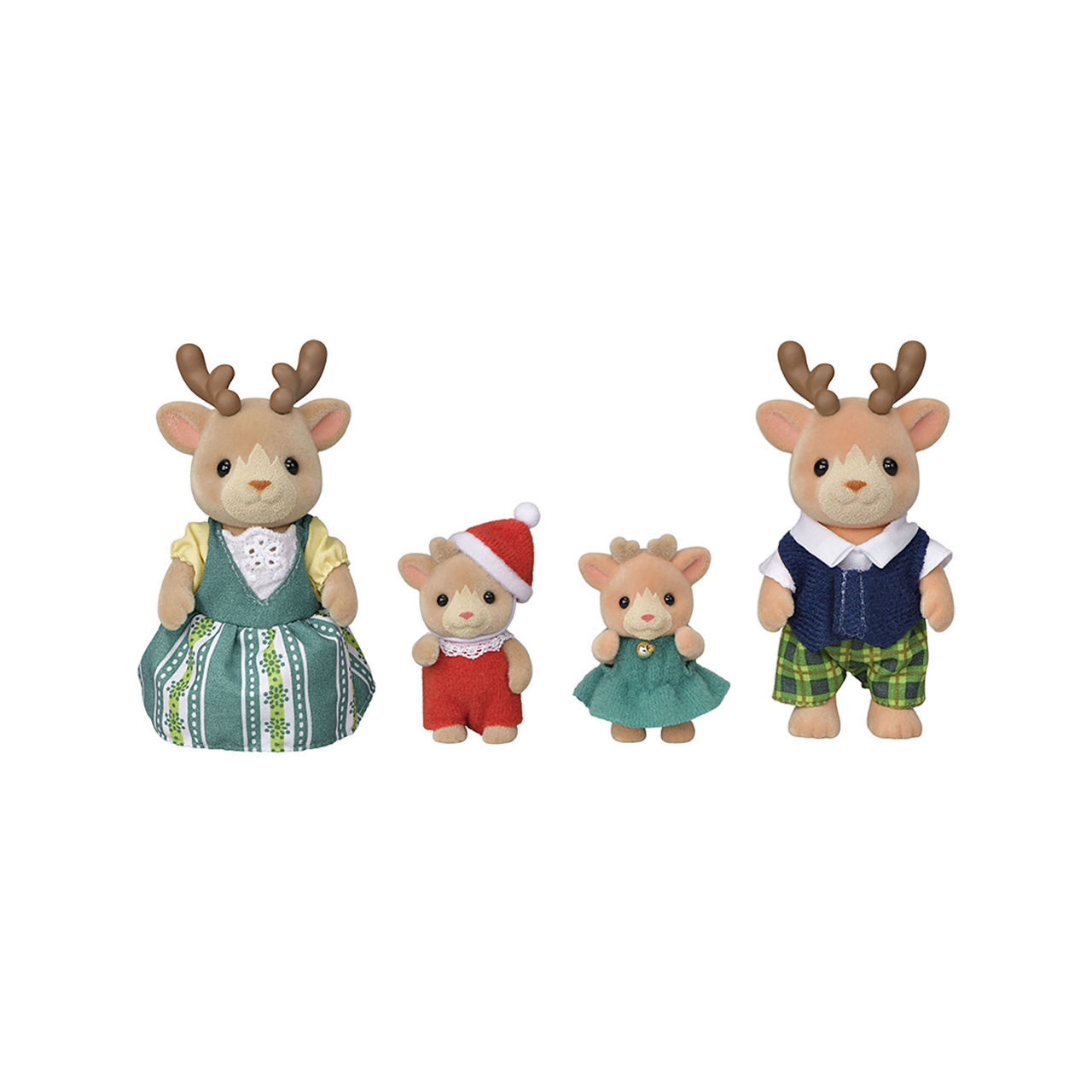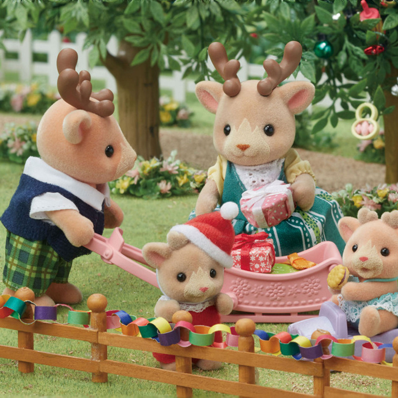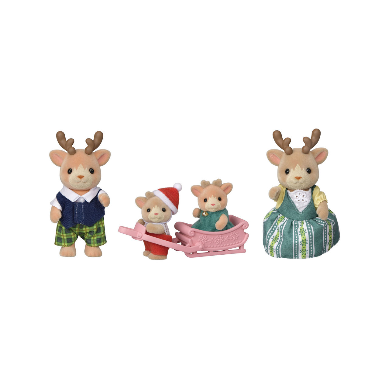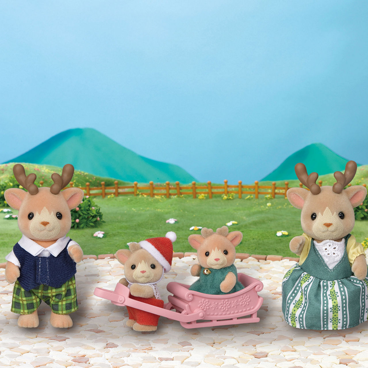 - Set includes Reindeer Father, Mother, Red and Green Outfit Baby characters, plus hat and sleigh accessories