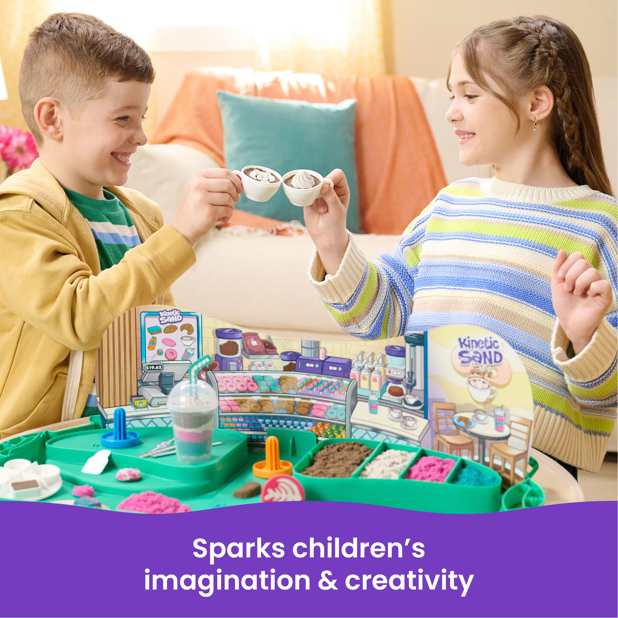 • Includes 793g kinetic sand, one case, two cappuccino cups, one frappe cup, one saucer, one grater knife, one cake pop stick, 3 latte stampers, one decorative background, 12 decorative punch-outs, one instruction sheet