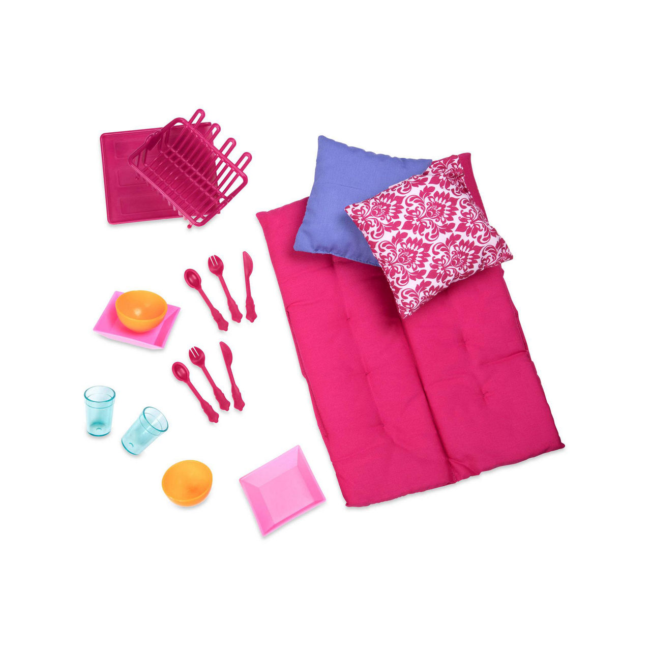 A cosy home on the road! Over the mountain and through the woods, Our Generation camper is here to bring all the comforts of home on the road. Hit the road and get ready for fun and adventure with the Our Generation R.V. Seeing You Camper – Silver! This trailer will provide your favourite 18-inch dolls with a home on the road wherever their exploration takes them. Great for a friends getaway! Use the included trailer hitch to connect to your Our Generation vehicle (like the My Way and Highways 4×4, sold separately), or use the camper on its own as a mini home for your dolls. Equipped with a cute kitchenette including dishes for two, a fridge, stove, shelving, and sink, your dolls will have all the comforts of home. Slide out the table top for more space while your dolls are eating, and take the stool outside for a breath of relaxing fresh air. The dining bench folds out into a bed just the right size for your dolls to catch some ZZZs.
