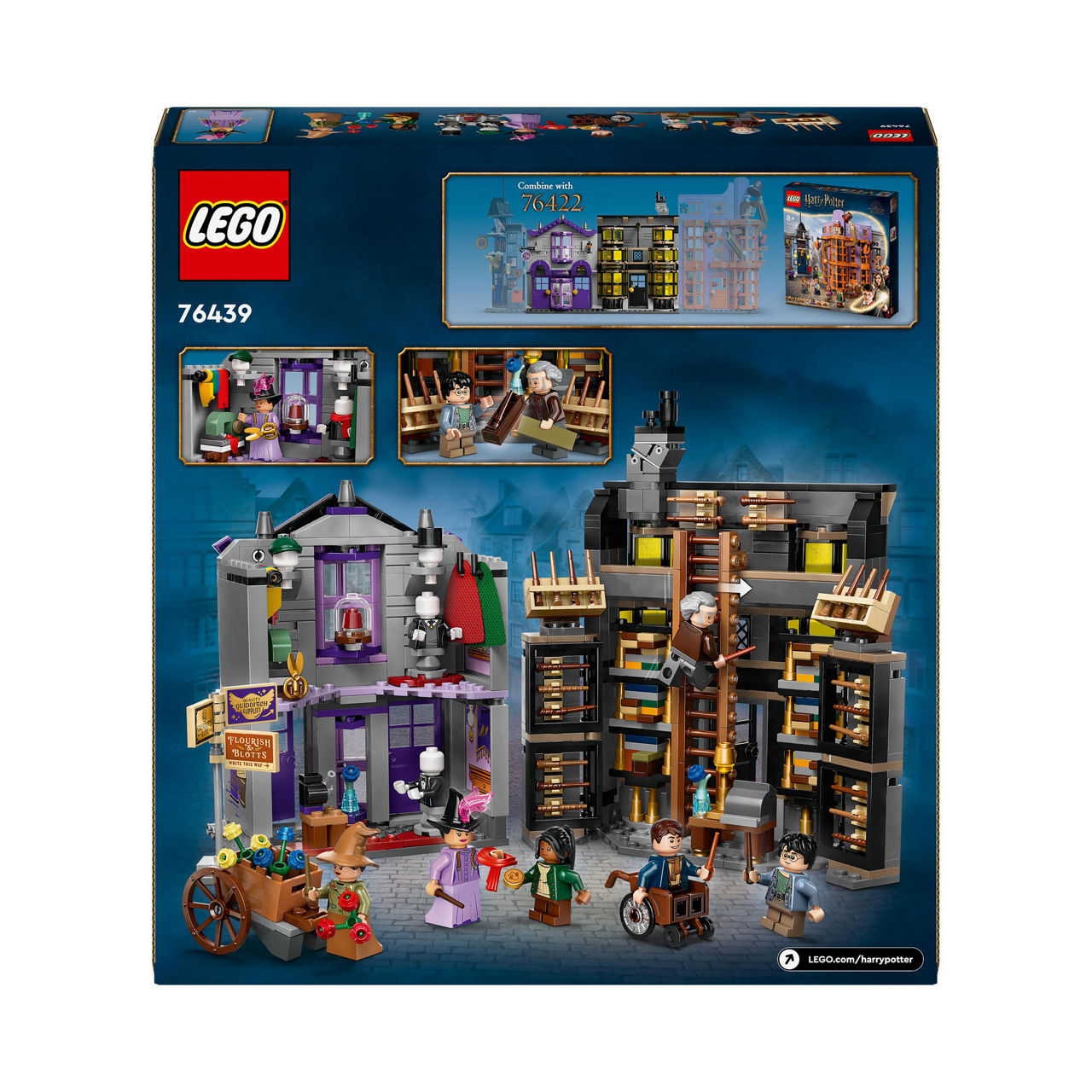 - 744 pieces, 2 Diagon Alley™ shops, authentically detailed brick models of Ollivanders™ & Madam Malkin's, foldout side walls, buildable shelves of wand boxes, removable box with Harry Potter’s wand inside, ladder, 2 wand racks, 2 buildable mannequins, playful accessory elements including different hats and cloaks, 26 toy wand elements, 6 collectible Harry Potter™ toy minifigures