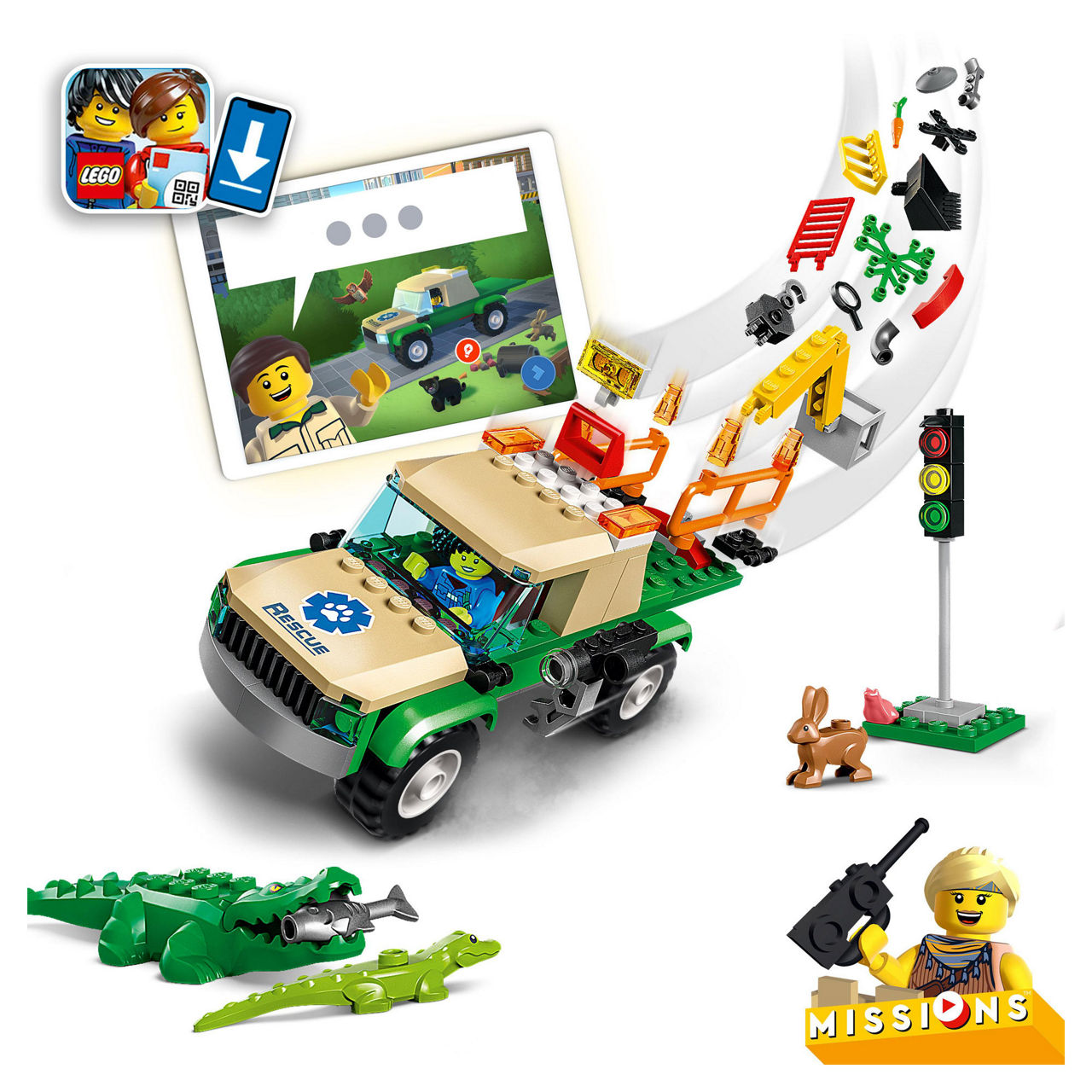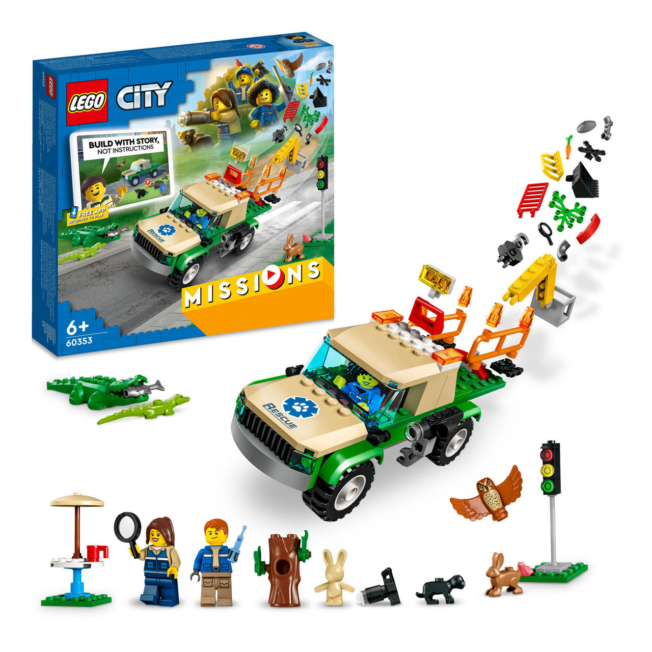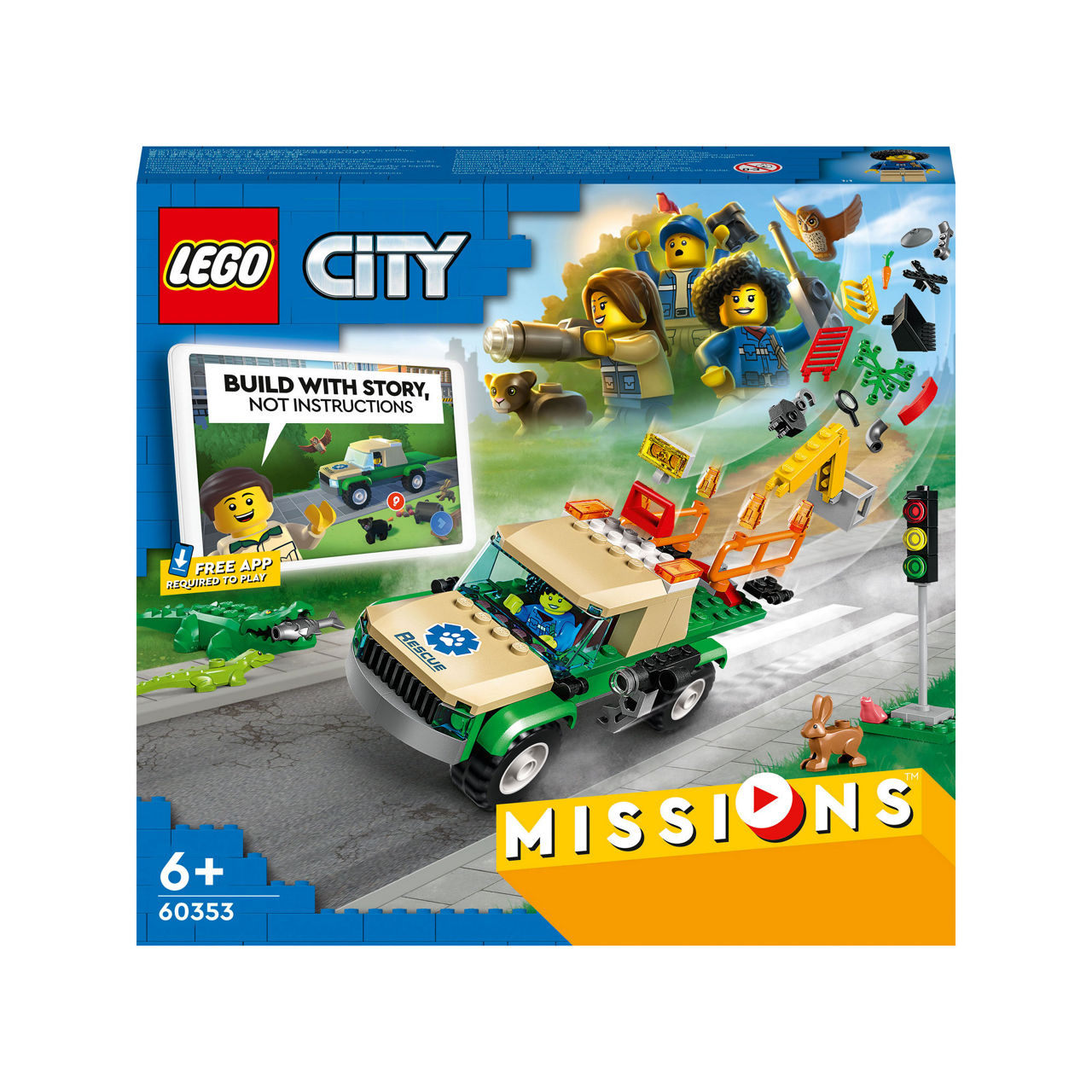 Introduce kids to an interactive play experience where they get to take the leading role in digital adventure stories, using real LEGO® bricks to complete cool on-screen missions. This LEGO City Wild Animal Rescue Missions (60353) toy playset features a mission truck, 3 minifigures, baby crocodile, panther cub, frog, hare and owl figures, plus lots of LEGO pieces for solving exciting story-led building challenges.