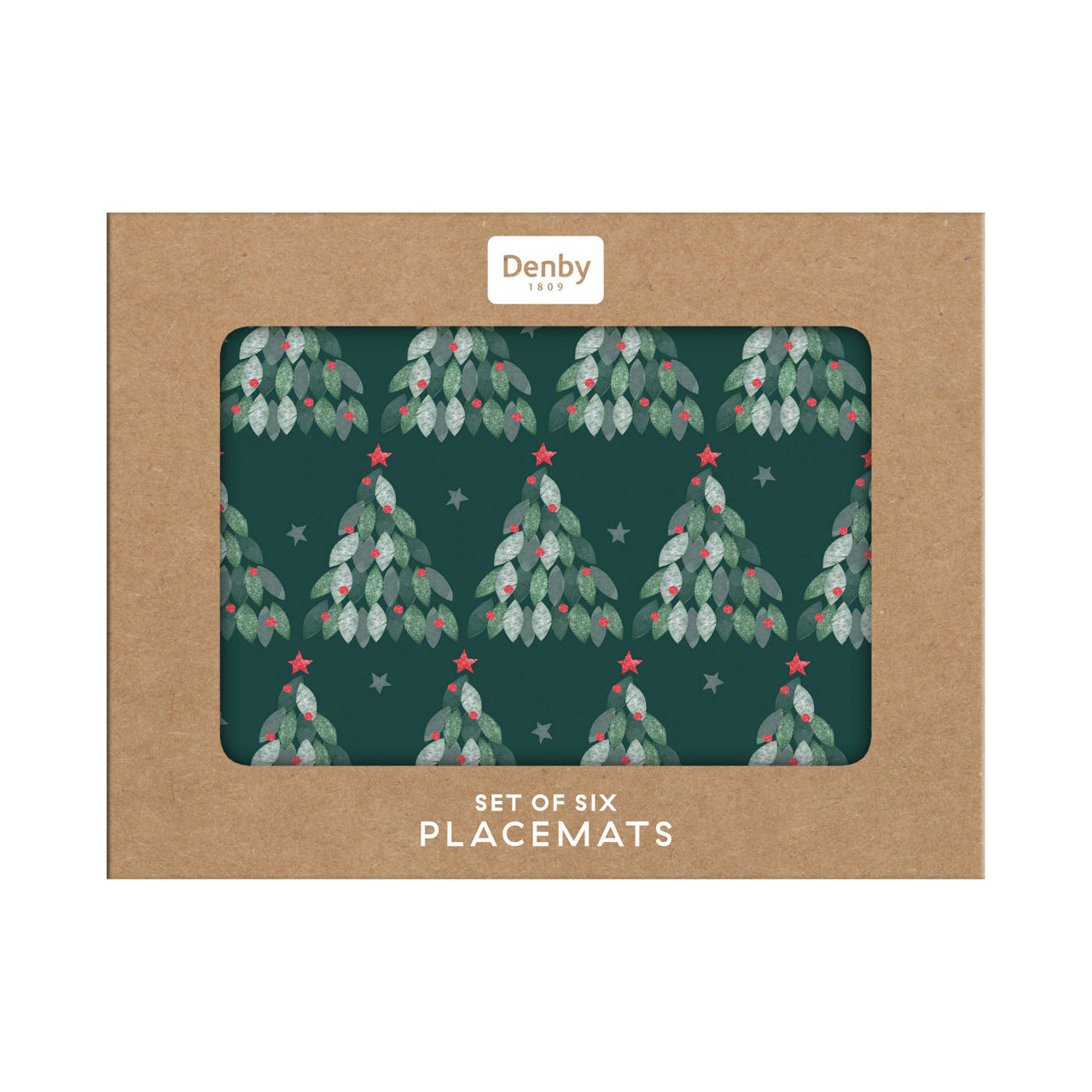 The Denby Everygreen Set of 6 Placemats feature a contemporary Christmas Tree design perfect for any table setting for the festive season.
