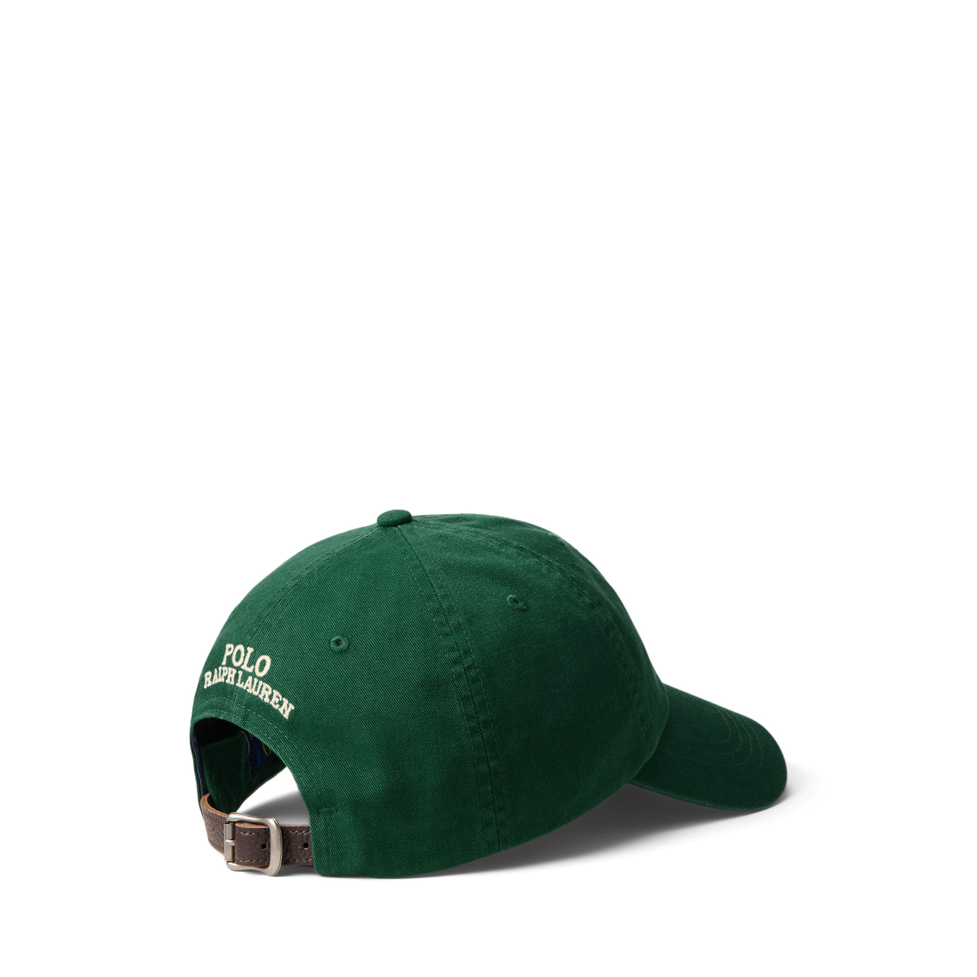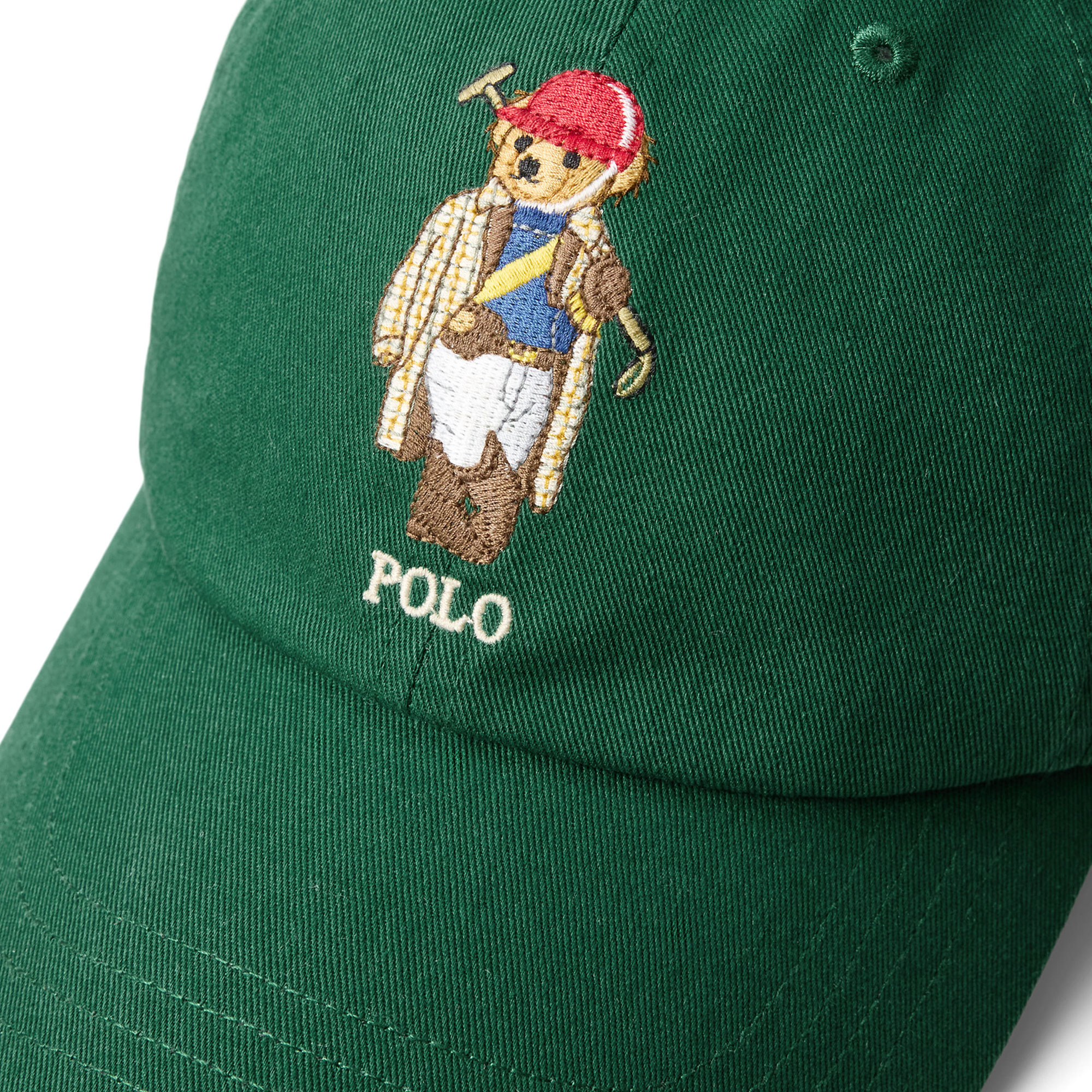 • Twill fabric, leather back strap, Polo Bear mascot detail, seamed bill, six-panel construction, ventilating embroidered eyelets, twill sweatband, logo embroidery