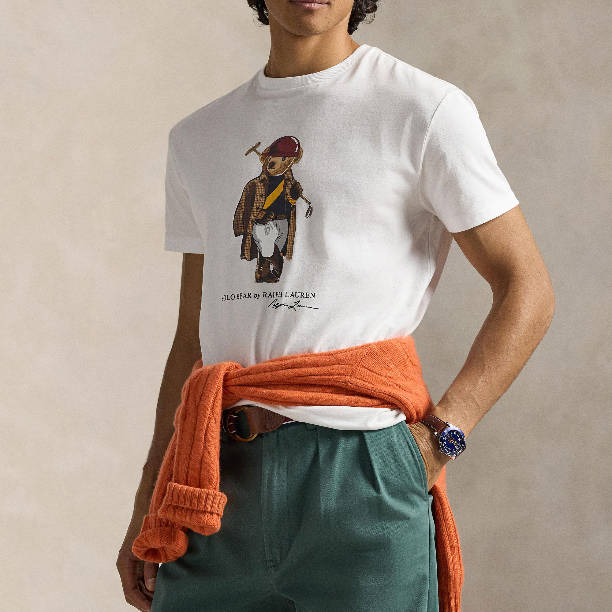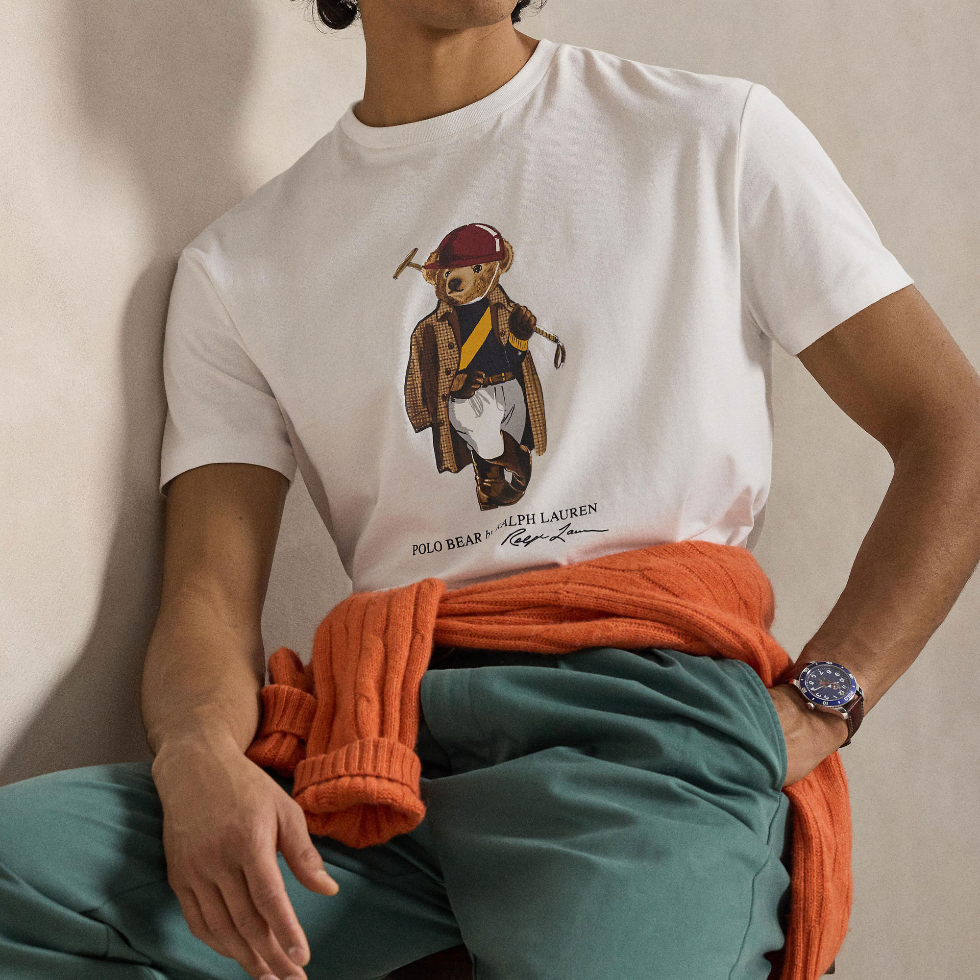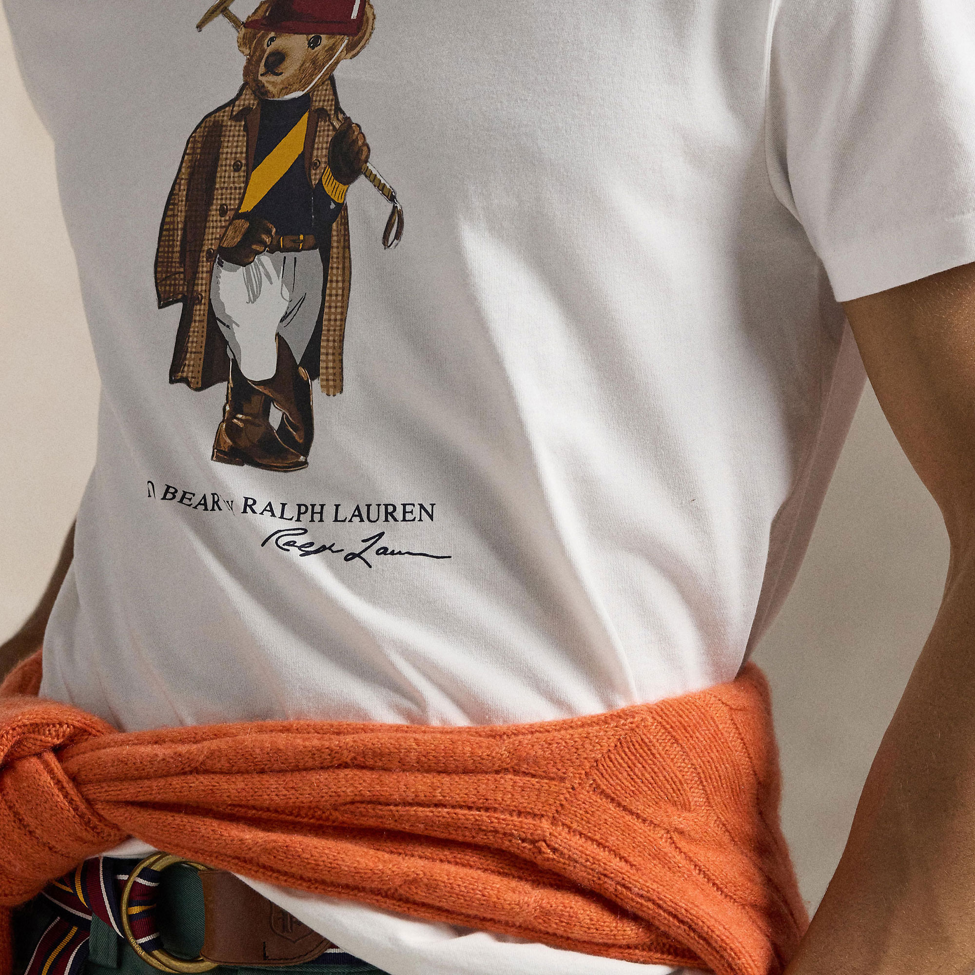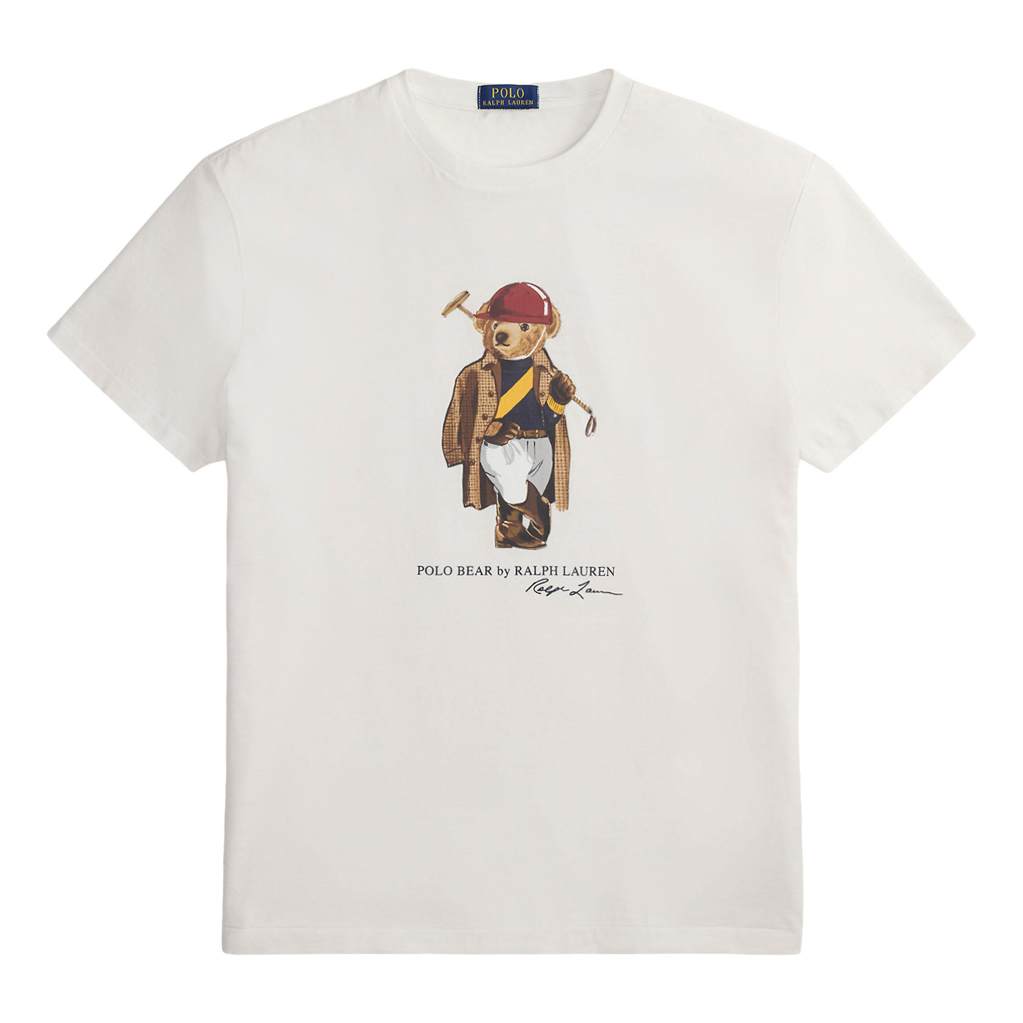 - Soft jersey fabric, Polo Bear mascot print, crew neckline, short sleeves, script logo