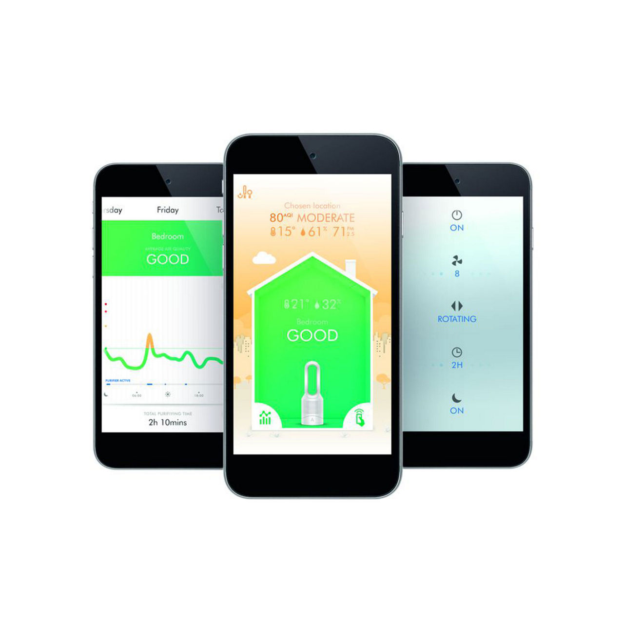 • Links up to smartphone app, intelligent purification, LED display, smooth oscillation,