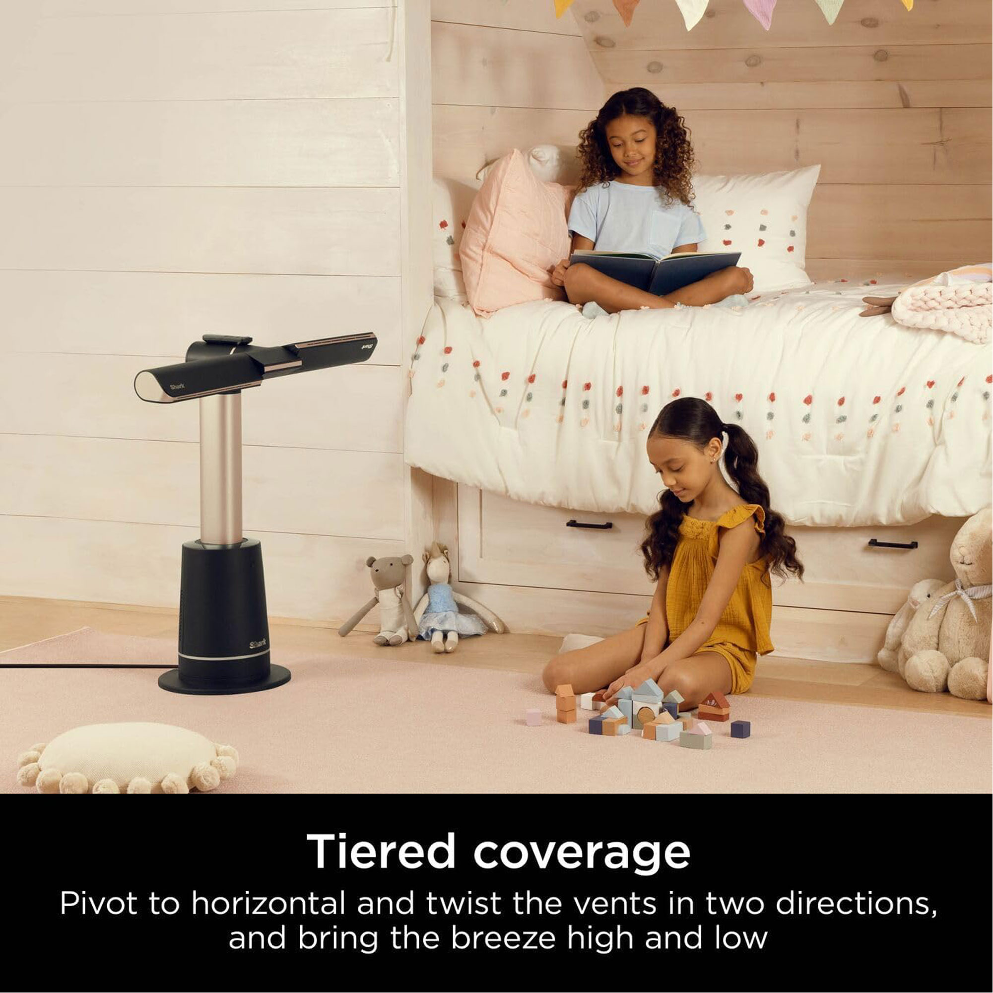 - Pivot vertically for focused cooling with a compact footprint, and horizontally for widespread air coverage in Air Blanket Mode.