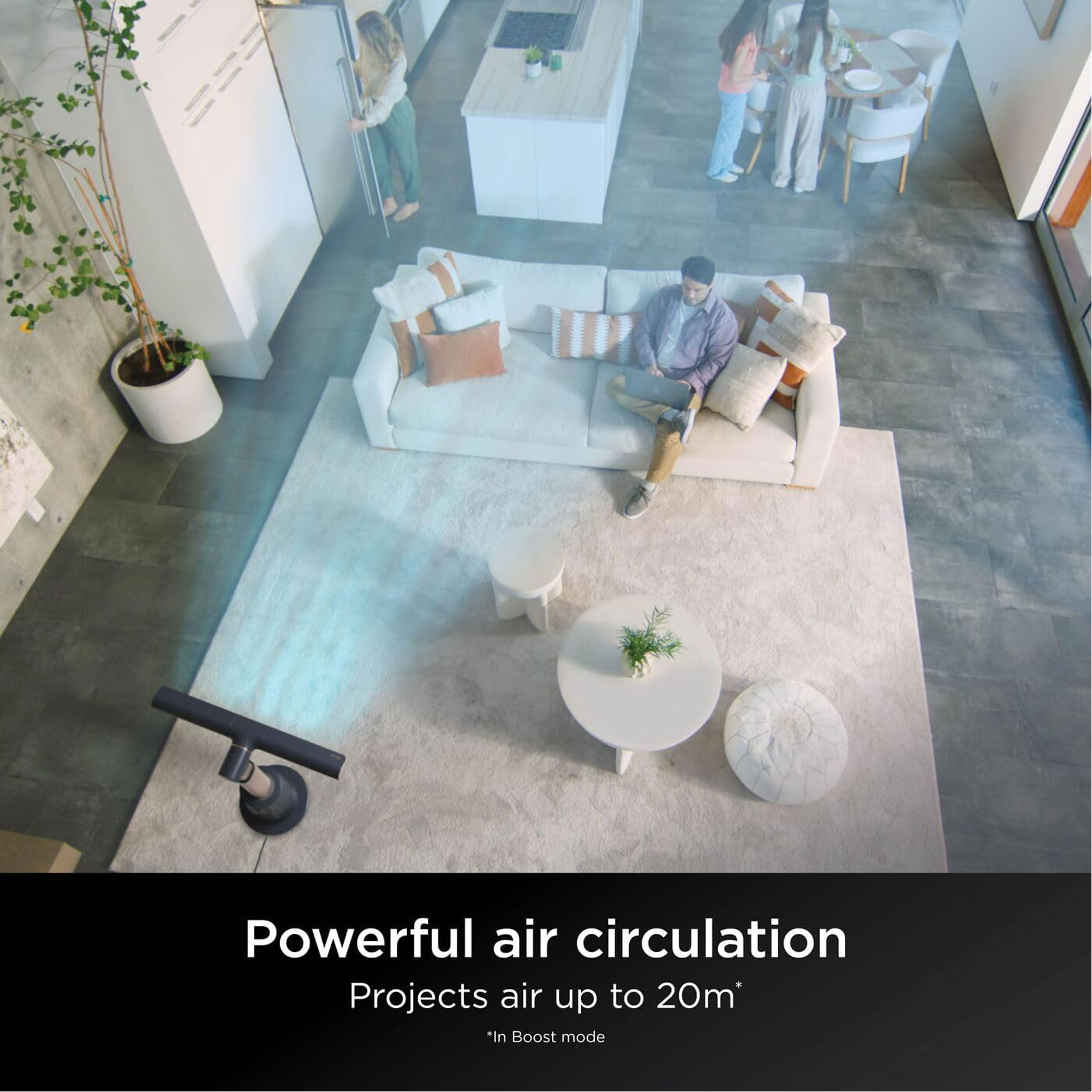 - Powerful, high-speed bladeless fan projects air up to 20m*