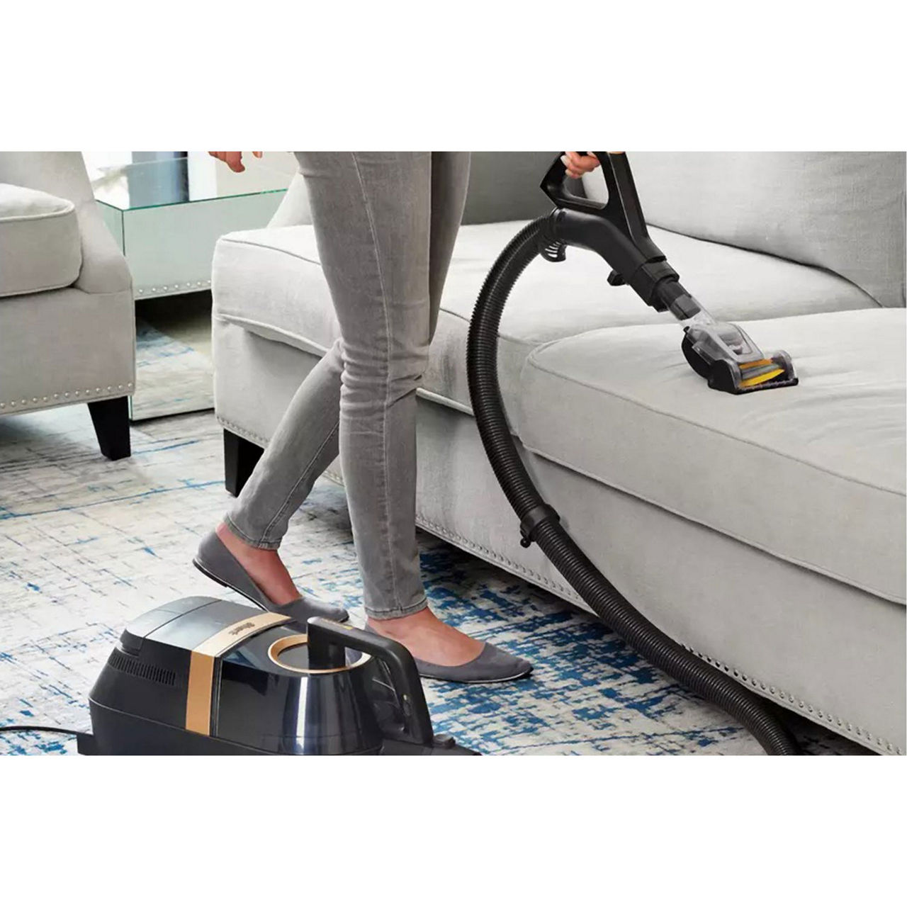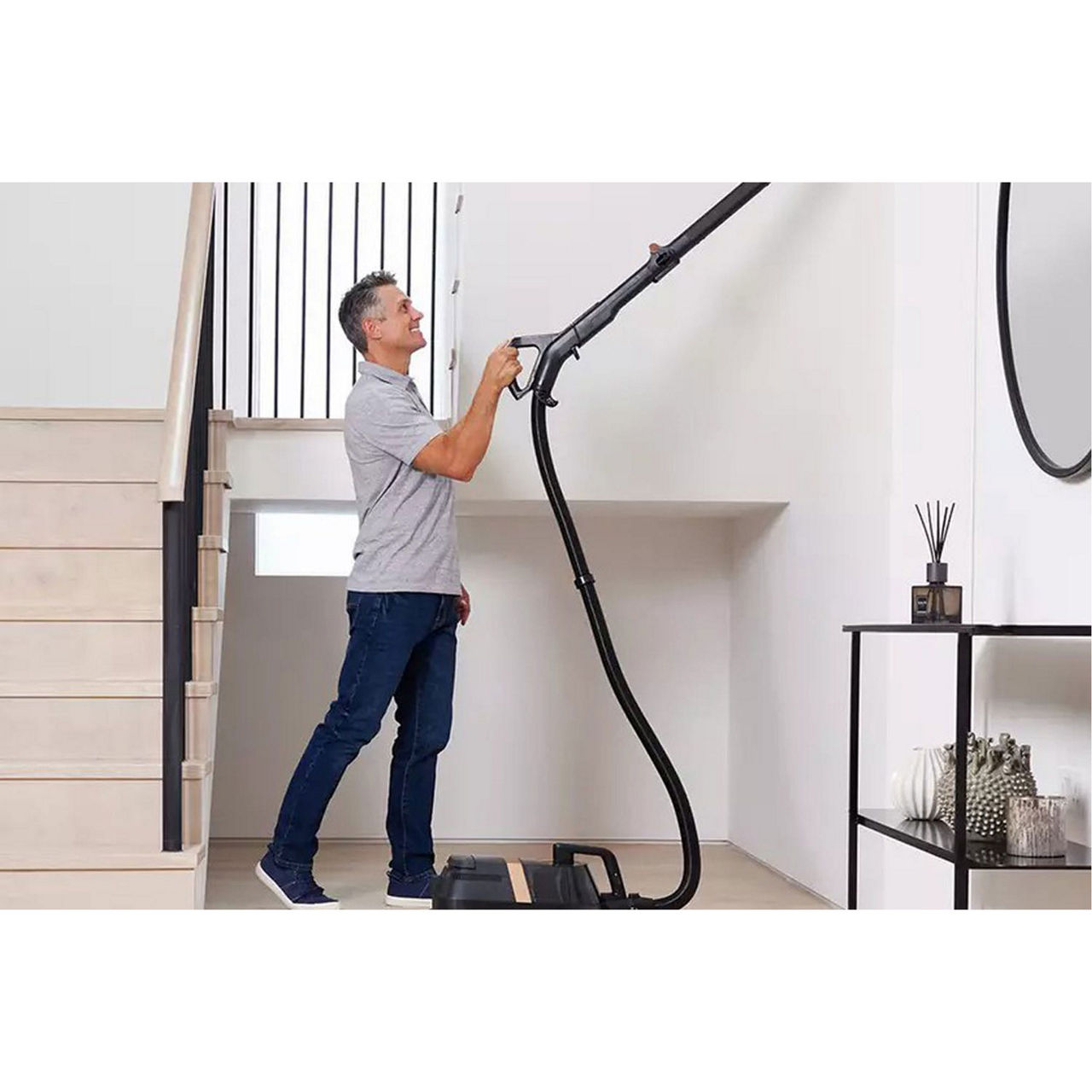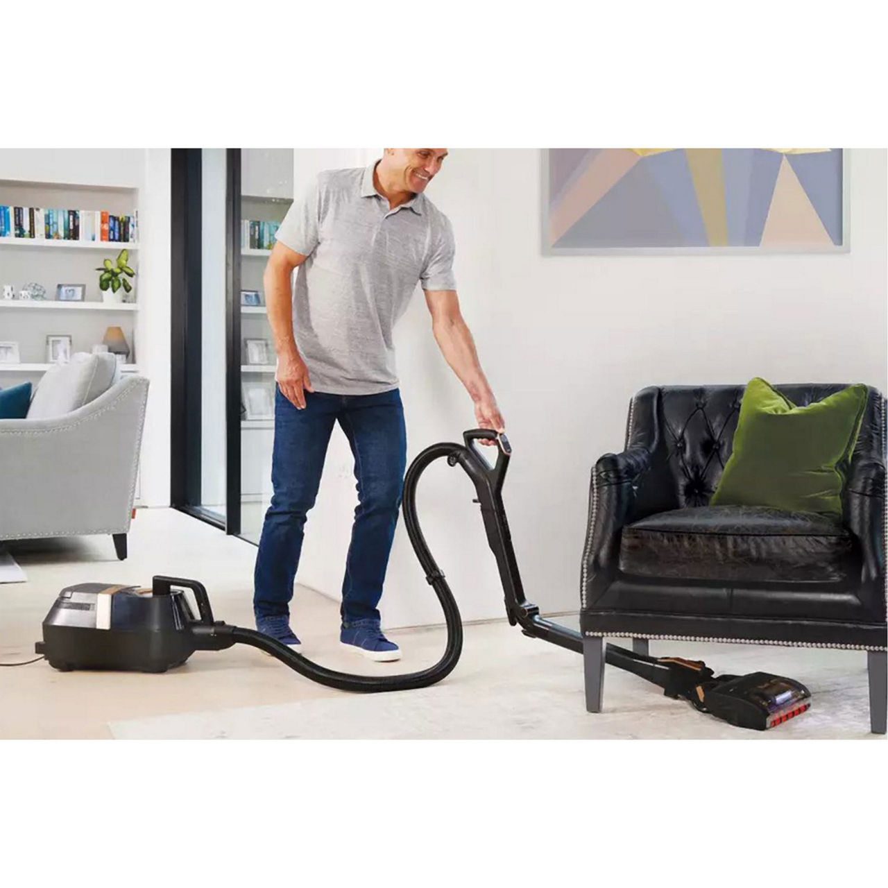 Bends so you don’t have to. For more than floors, comfortably clean stairs with the perfectly balanced pod and reach up high with the wand. Easily switch between 3 cleaning modes and suction settings with the intuitive LED Smart Display. Anti-Allergen Complete Seal captures and traps dust and allergens. Bright LED headlights illuminate hidden dust. Enjoy uninterrupted cleaning with a long 9m cable featuring automatic rewind.