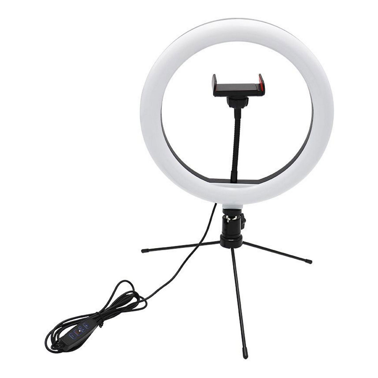 Get the best lighting with this 26cm LED Ring Light & Tabletop Tripod! Essential for the perfect picture, the adjustable table top tripod with LED ring light has variable colour tones making it ideal for make-up tutorials, photography or even video calls.