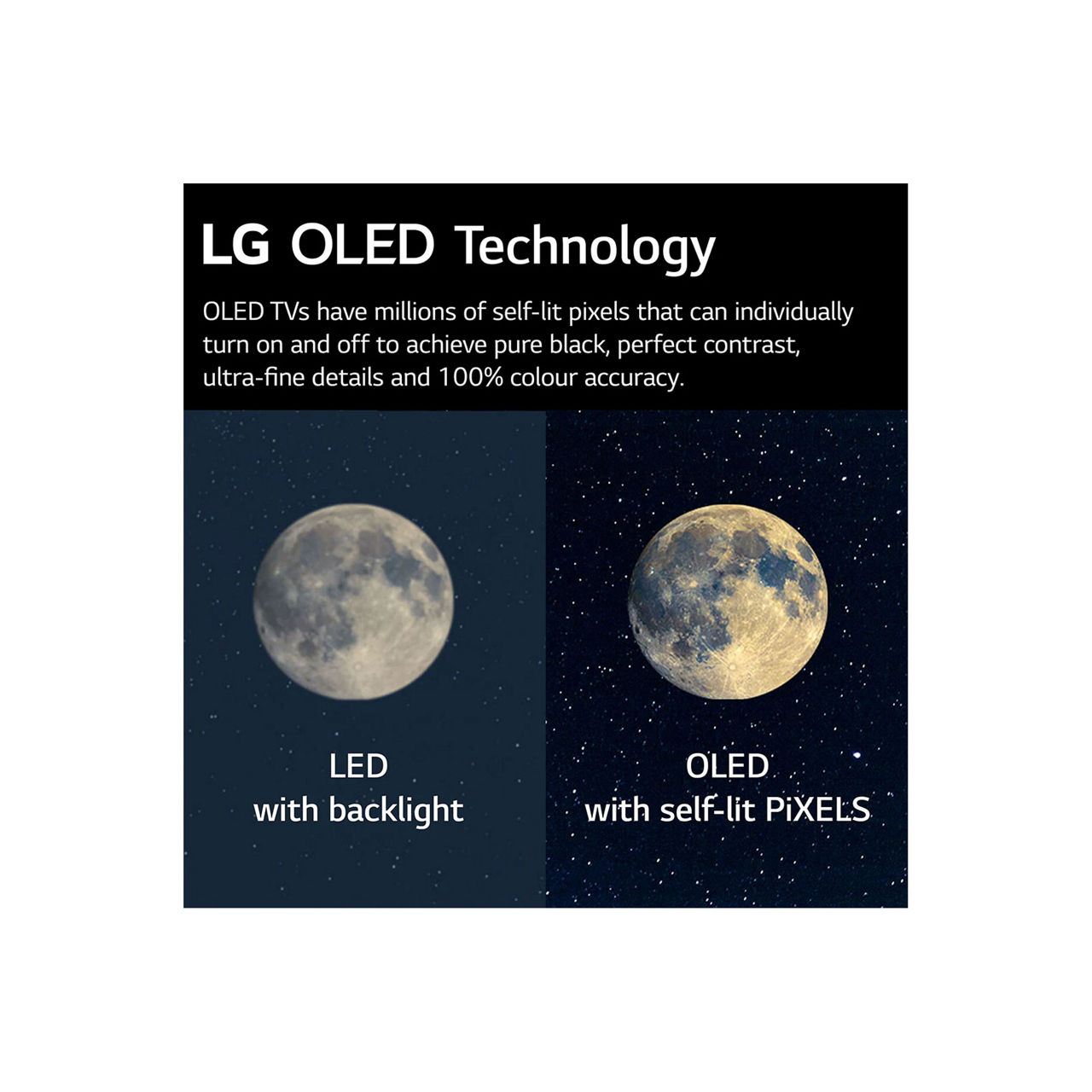 - LG 4K SELF-LIT OLED for perfect contrast & 100% colour accuracy