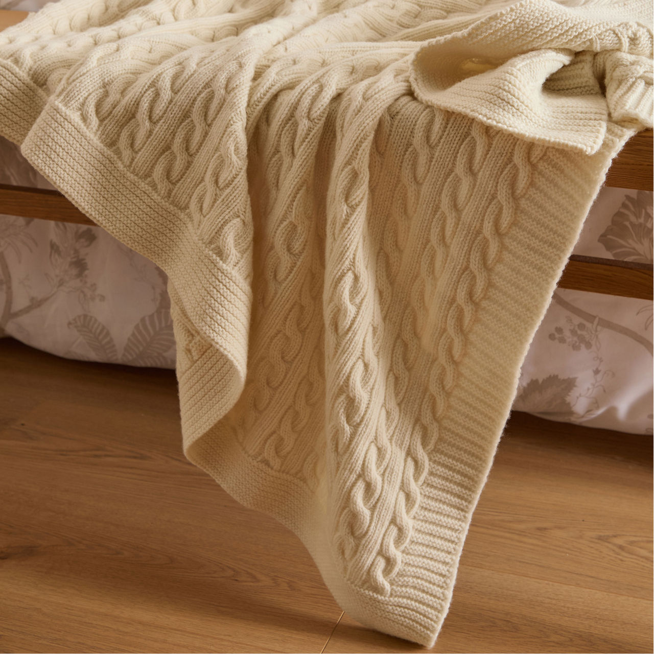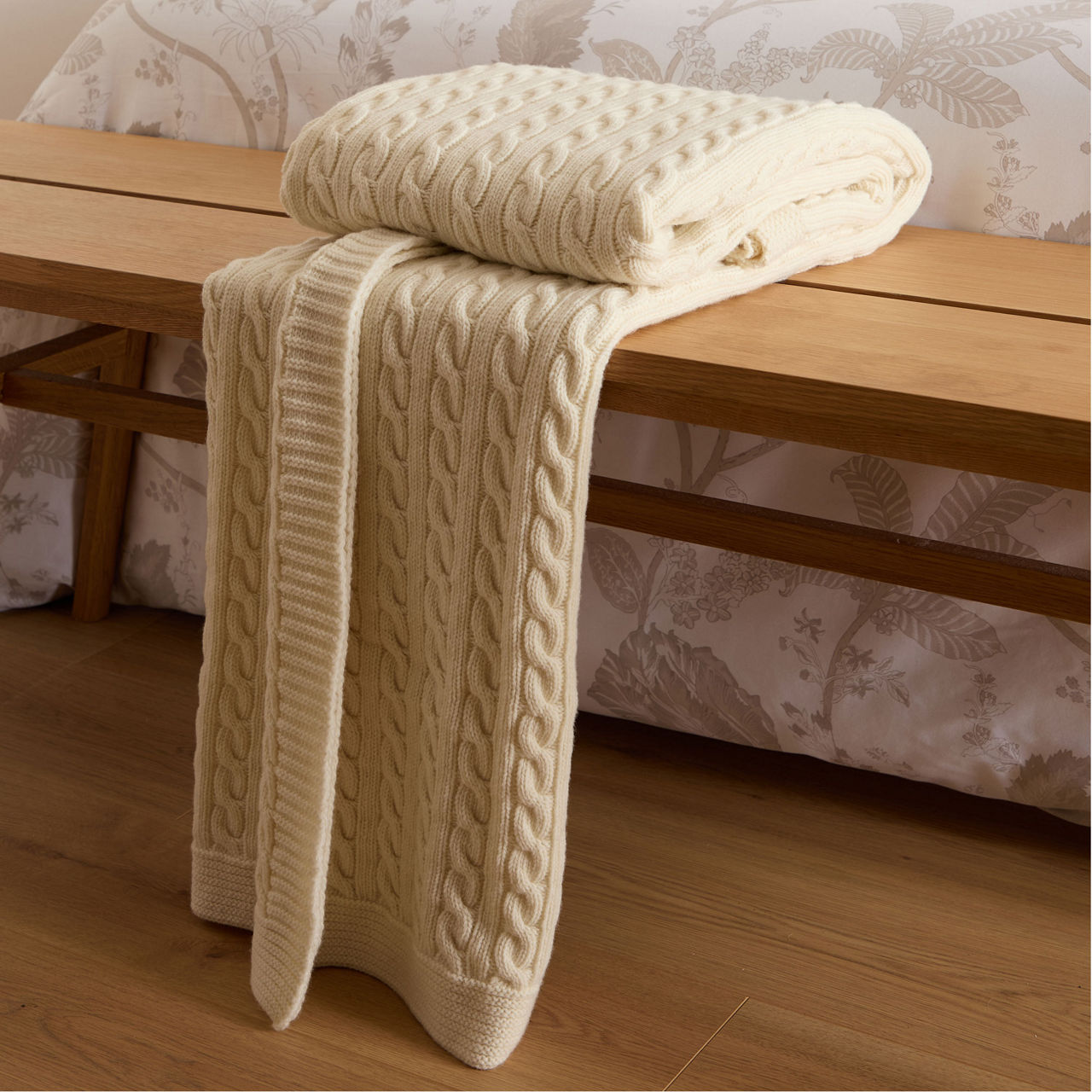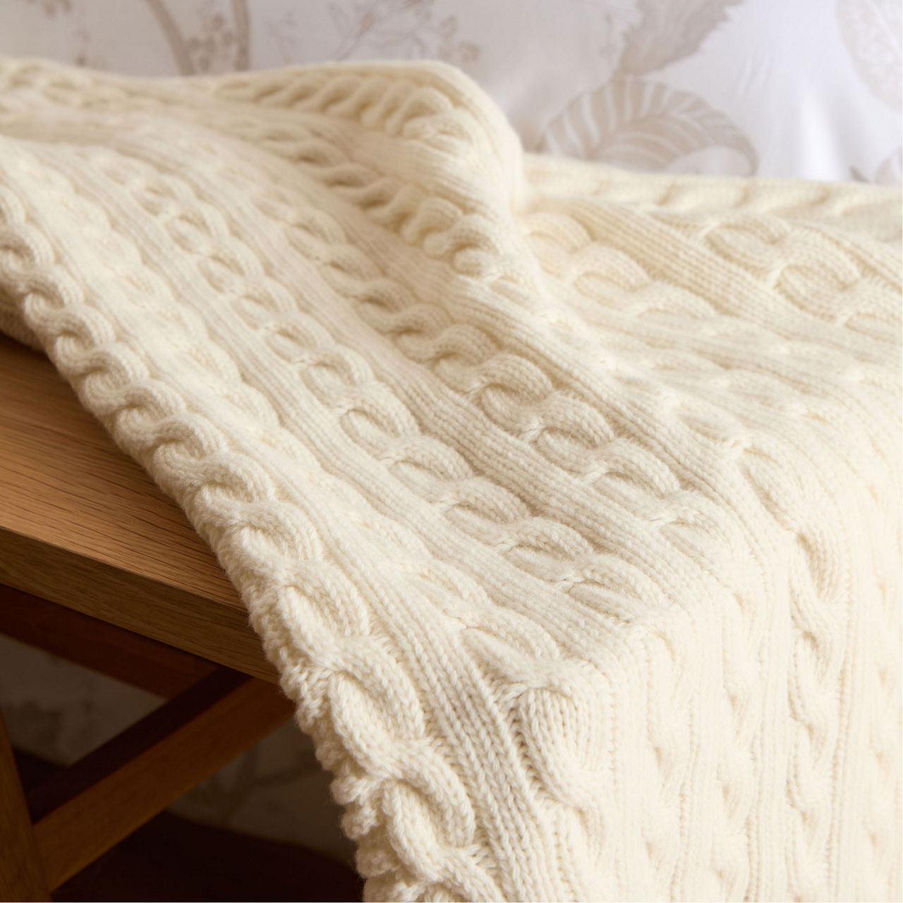 FOXFORD Online Exclusive Cable Knit Cream Merino Bed Blanket