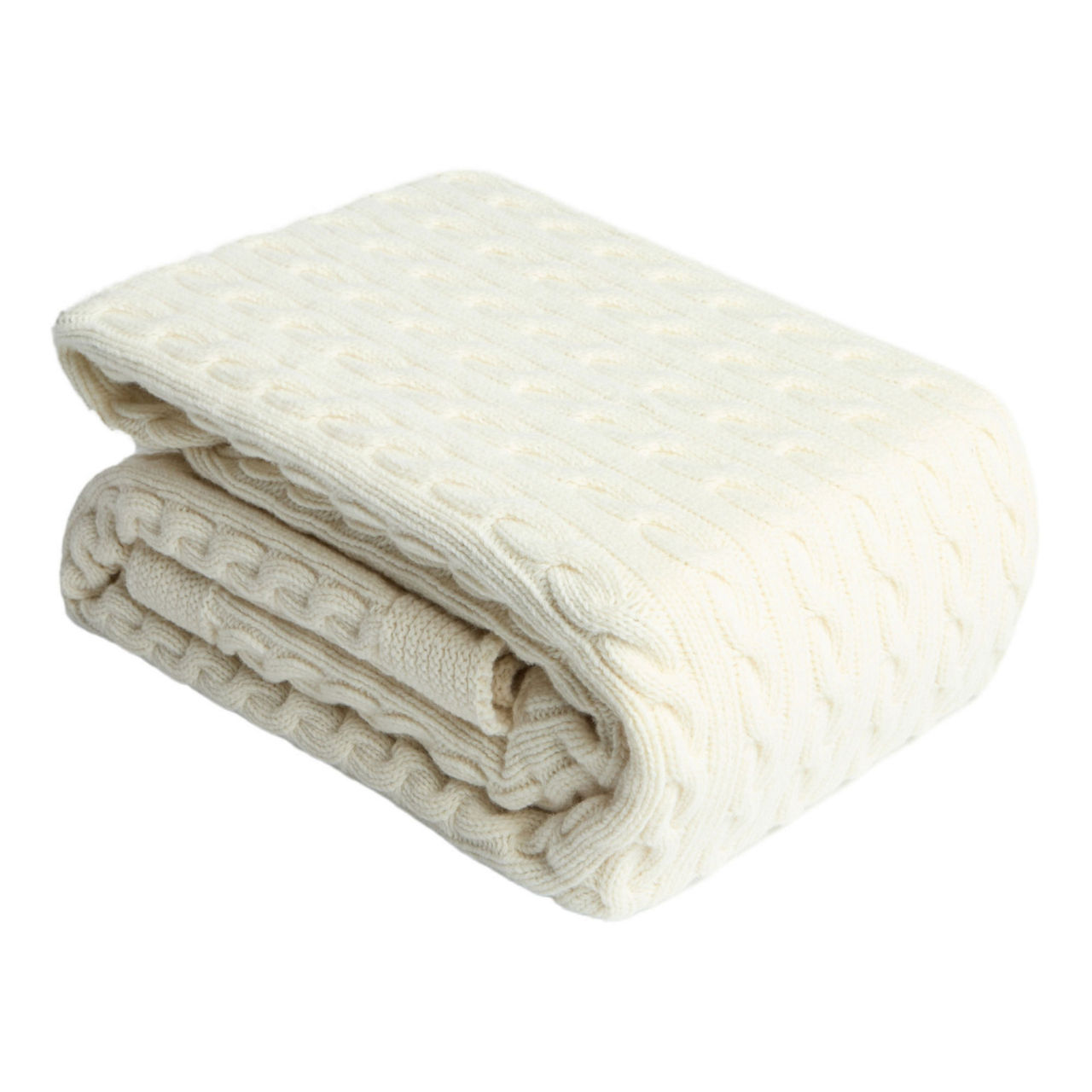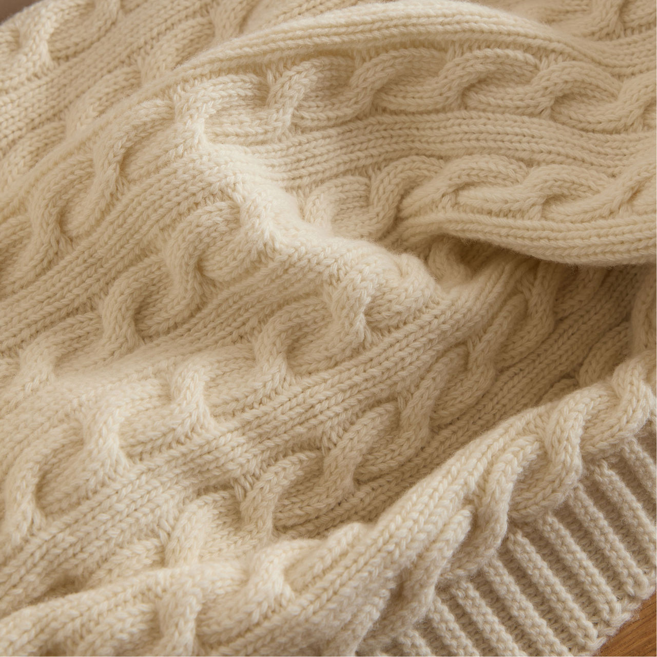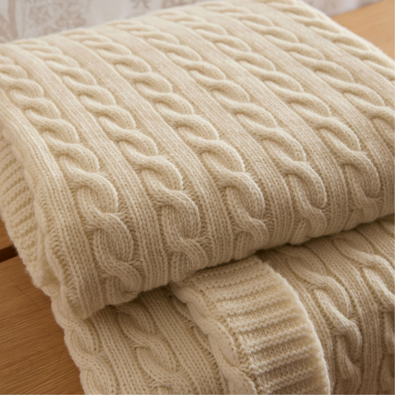 FOXFORD Online Exclusive Cable Knit Cream Merino Bed Blanket
