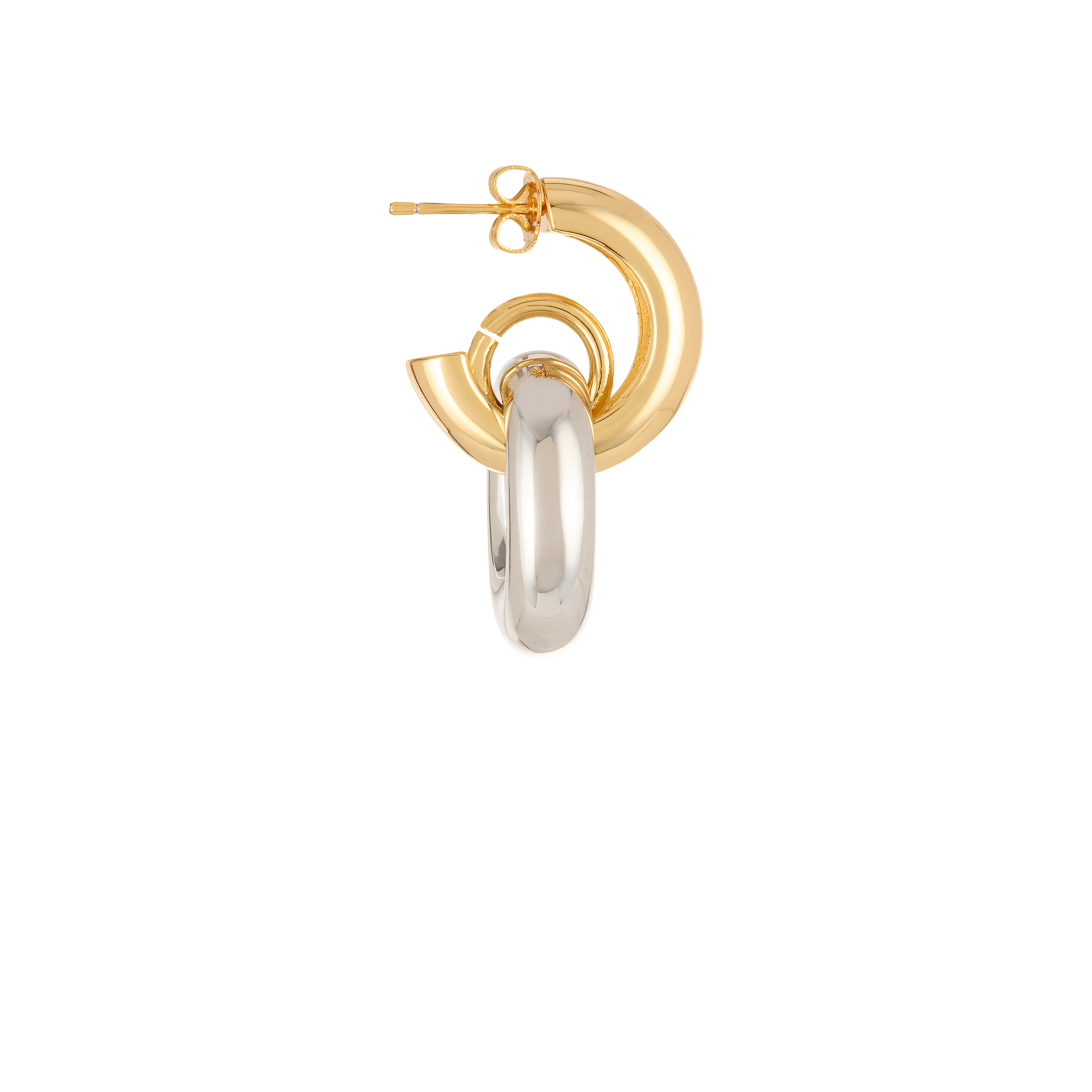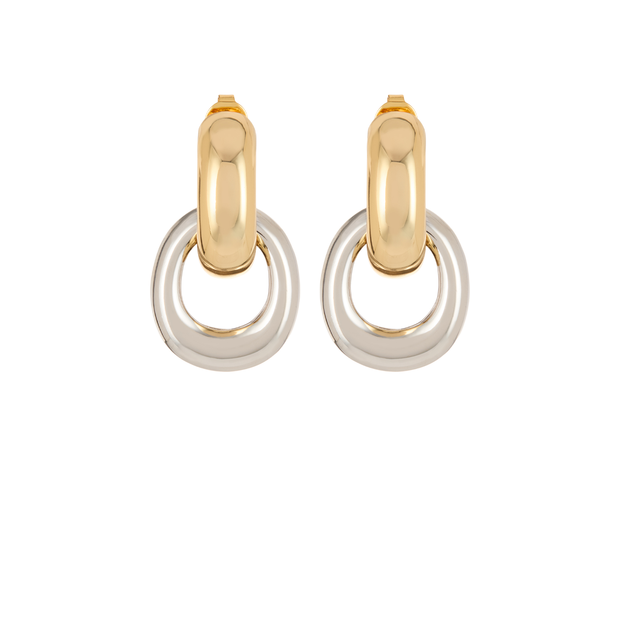 - Post stud fastening, butterfly clasp, chunky linked hoop design, drop style, polished two-tone finish