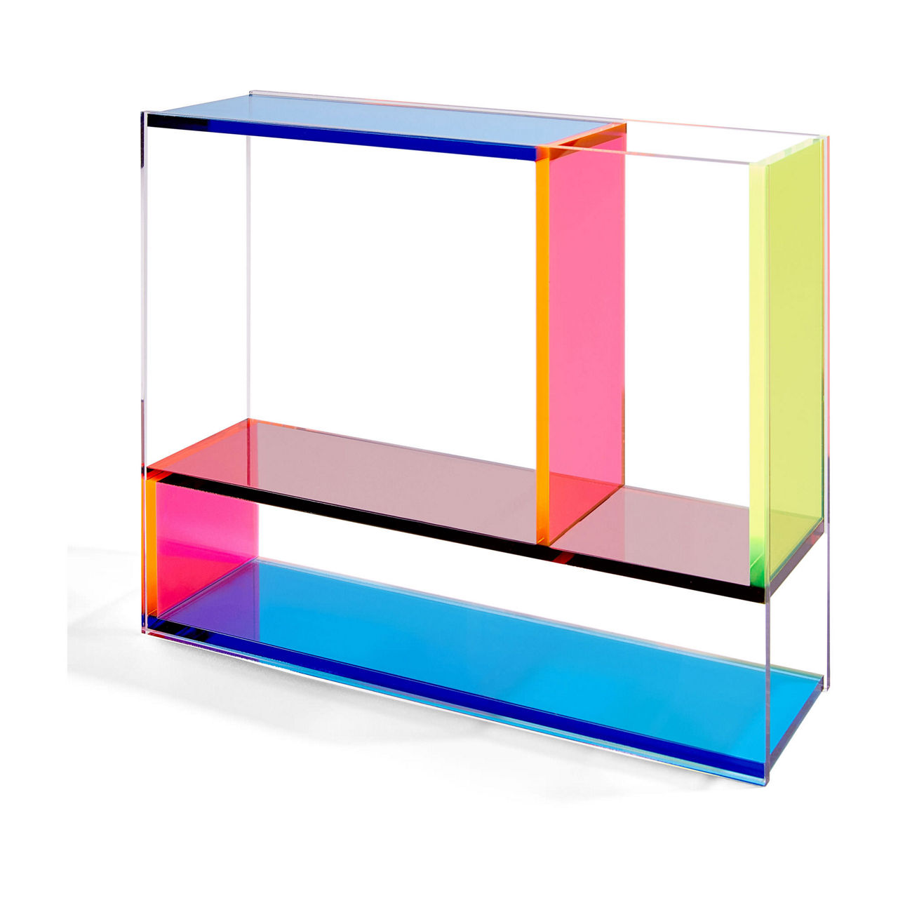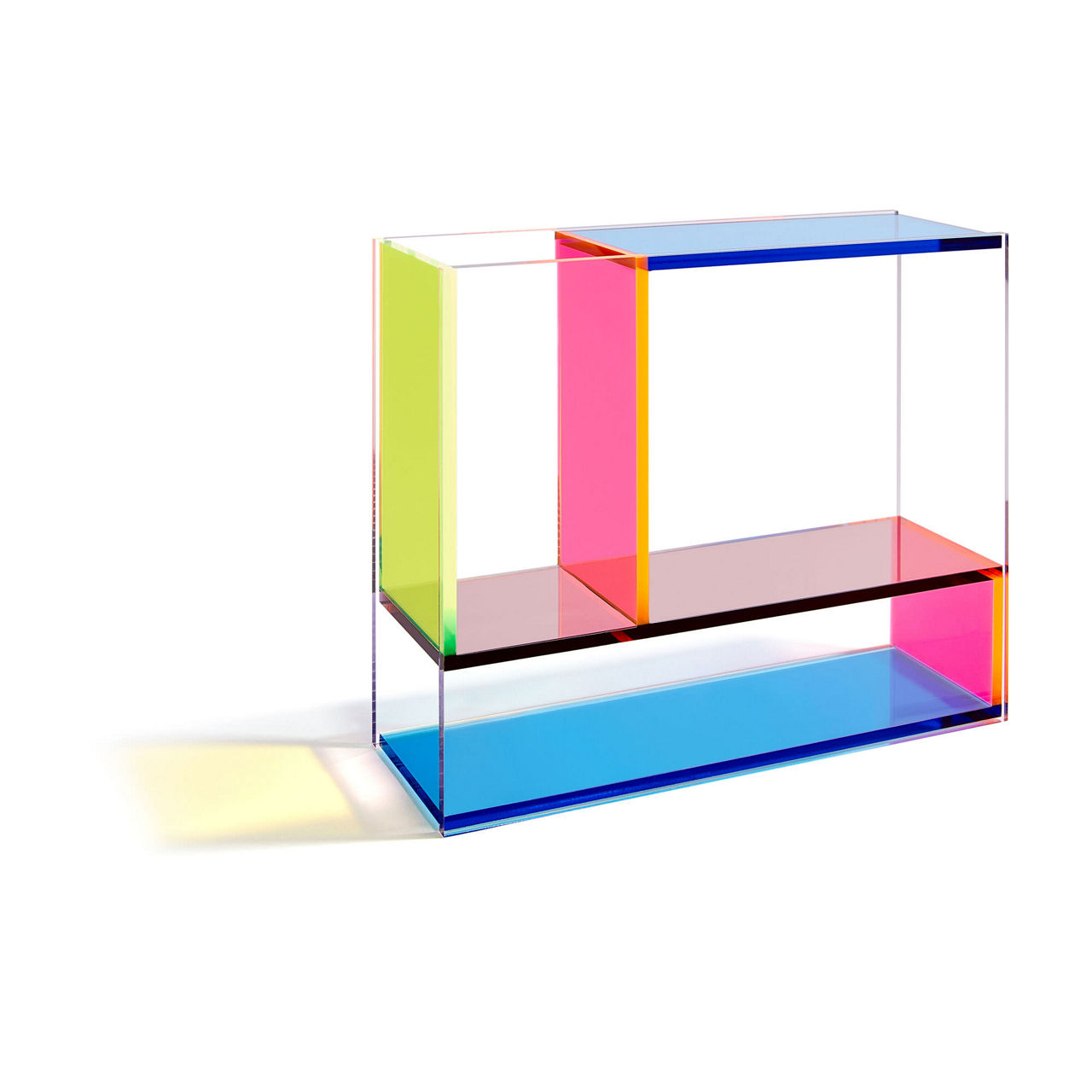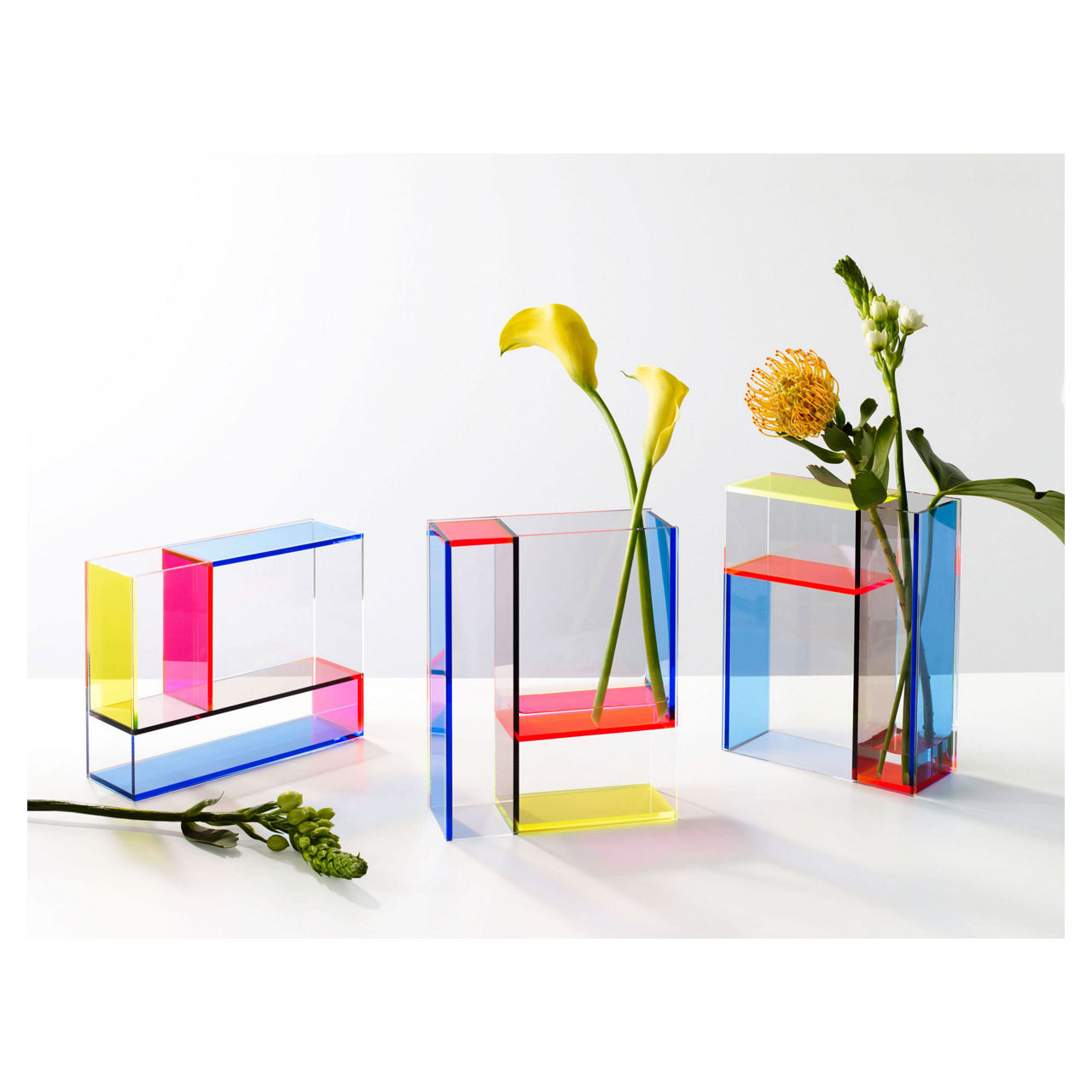 This updated version of the popular Mondri Vase uses transparent acrylic neon panels that create delightful colourplay and beautiful shadows. Three vases in one, it’s designed with three different chambers, so you can turn the vase for different floral arrangement possibilities and flower sizes. The Neon Mondri Vase is a mix of clear and blue, yellow, pink and lavender panels.