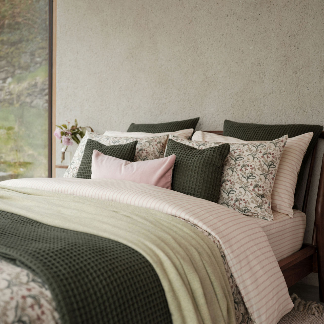 Discover the elegance of the Foxford Honeycomb Cushion, a must-have for enhancing your bedroom. Crafted from 100% cotton, it's a versatile choice for staying cosy or adding a touch of vibrancy to your bedding.