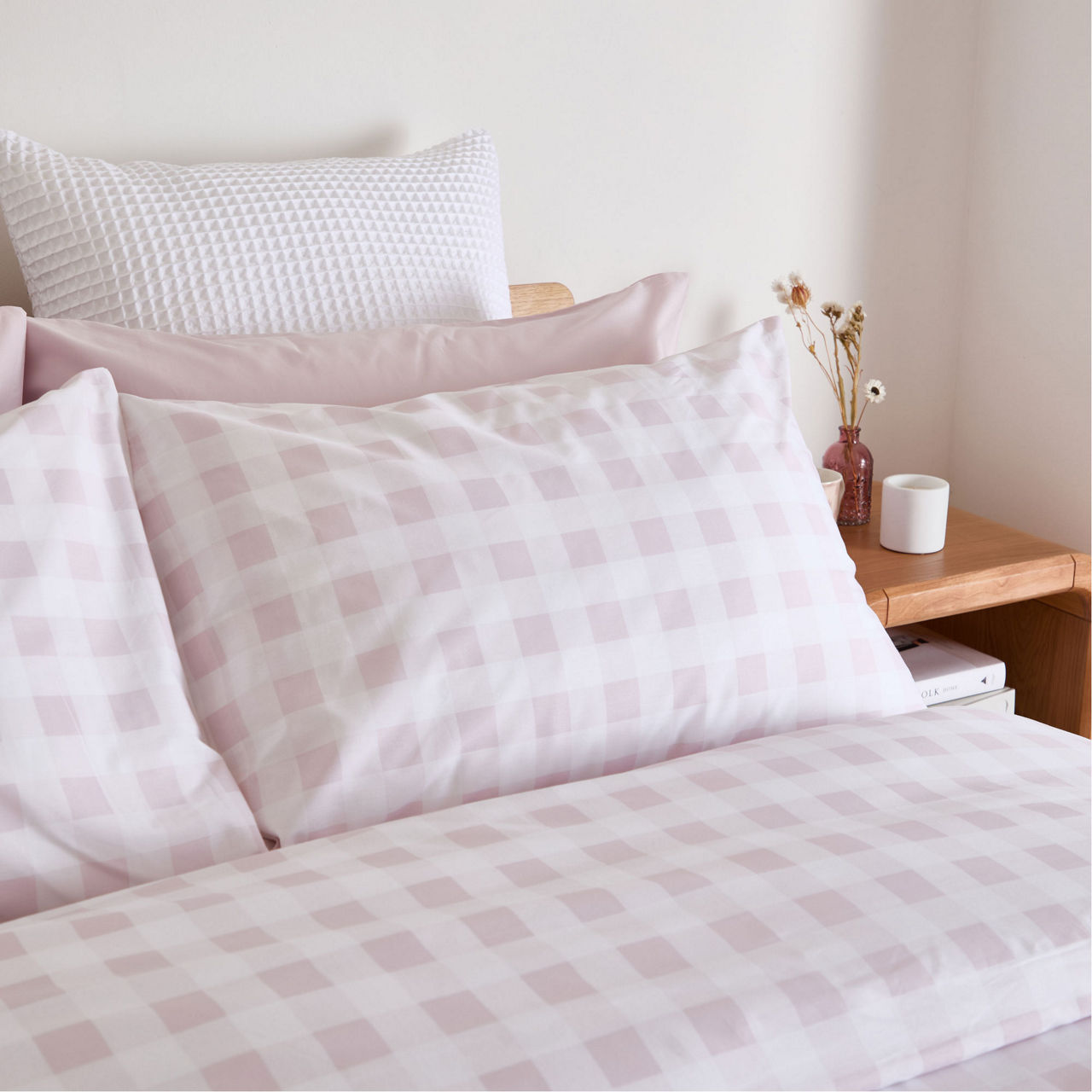 • Two pillowcases, standard housewife style, gingham print, breathable, durable, Oeko-Tex Certified fabric to ensure free of harmful chemicals and safe on skin
