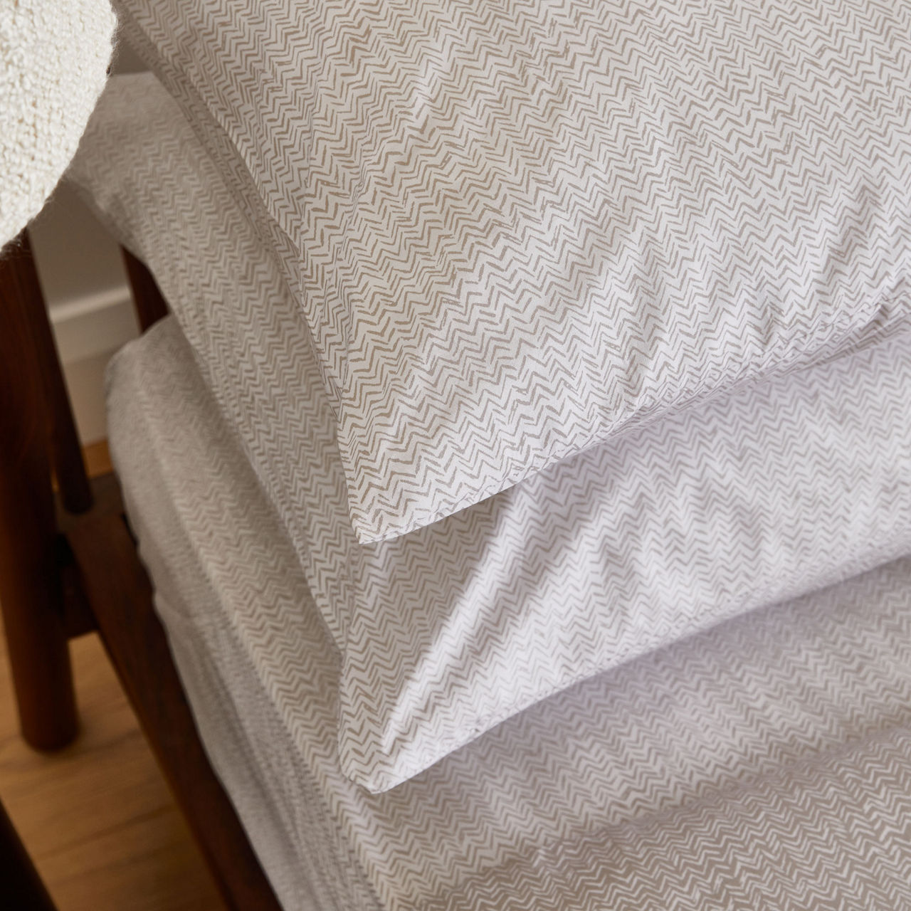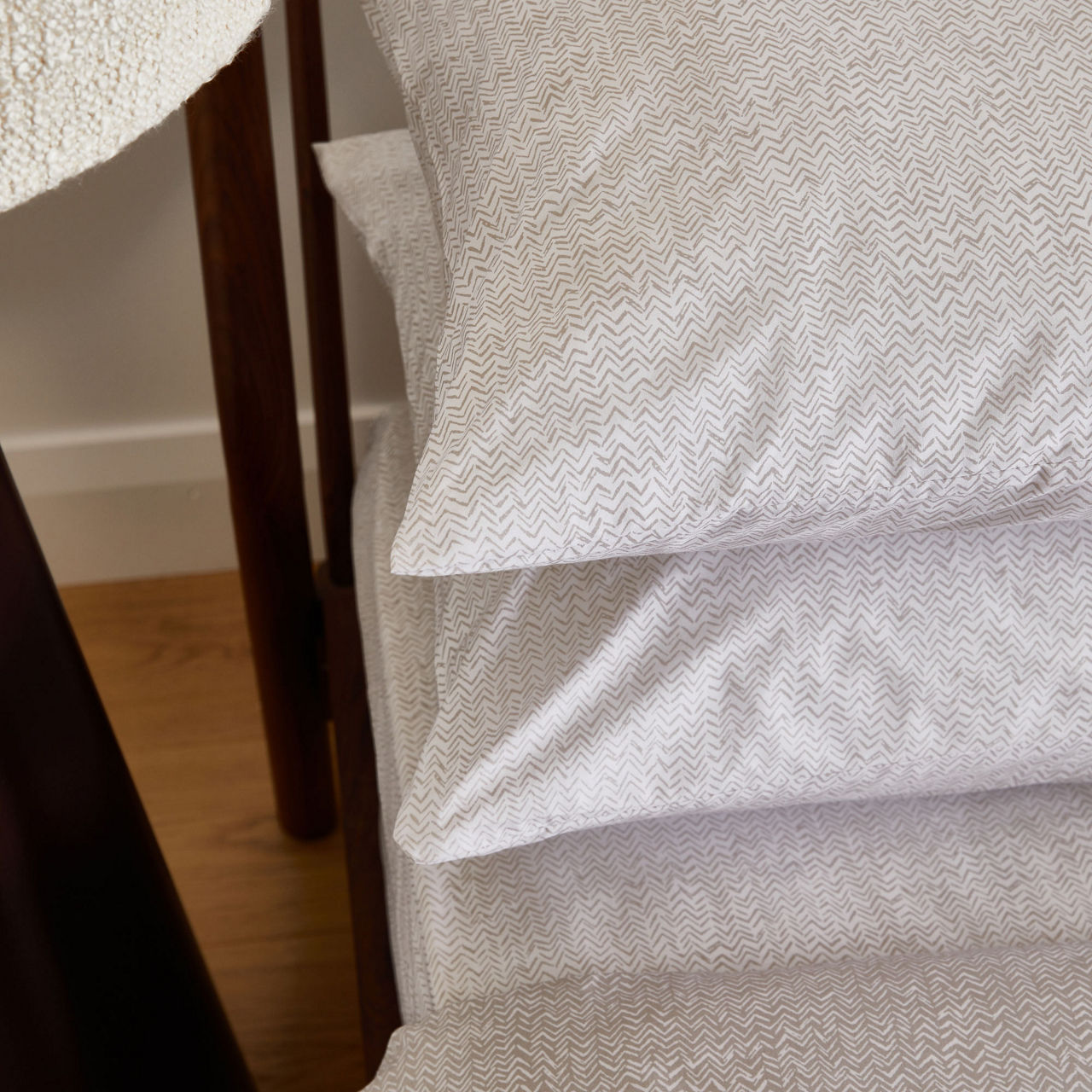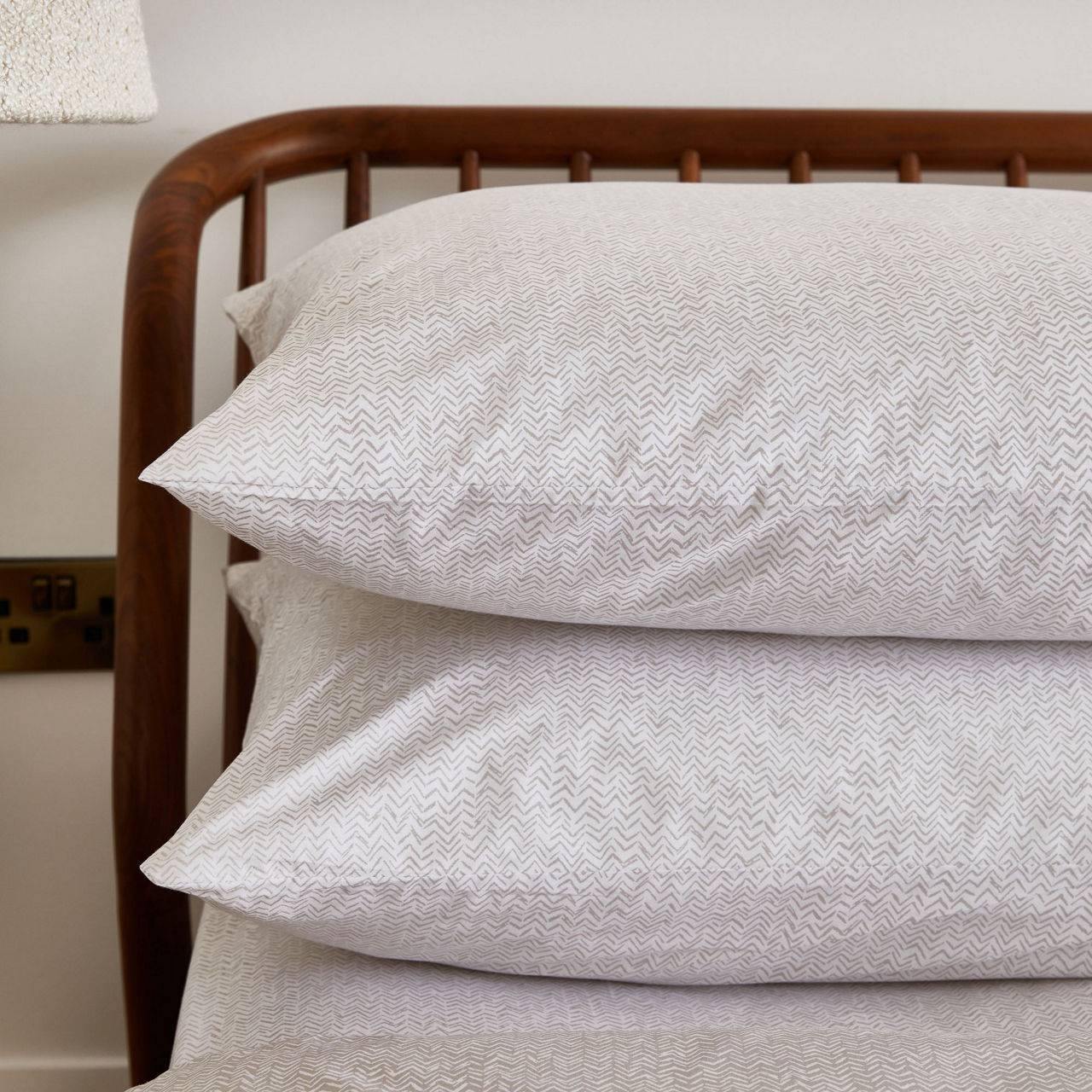 Transform your bedroom into a haven of luxury and sophistication with the Nacre Weave Pillowcase Set from Foxford created by esteemed Irish designer Helen McAlinden. Each pillowcase exudes exceptional quality and showcases an exquisite mink chevron design on a pristine white backdrop.