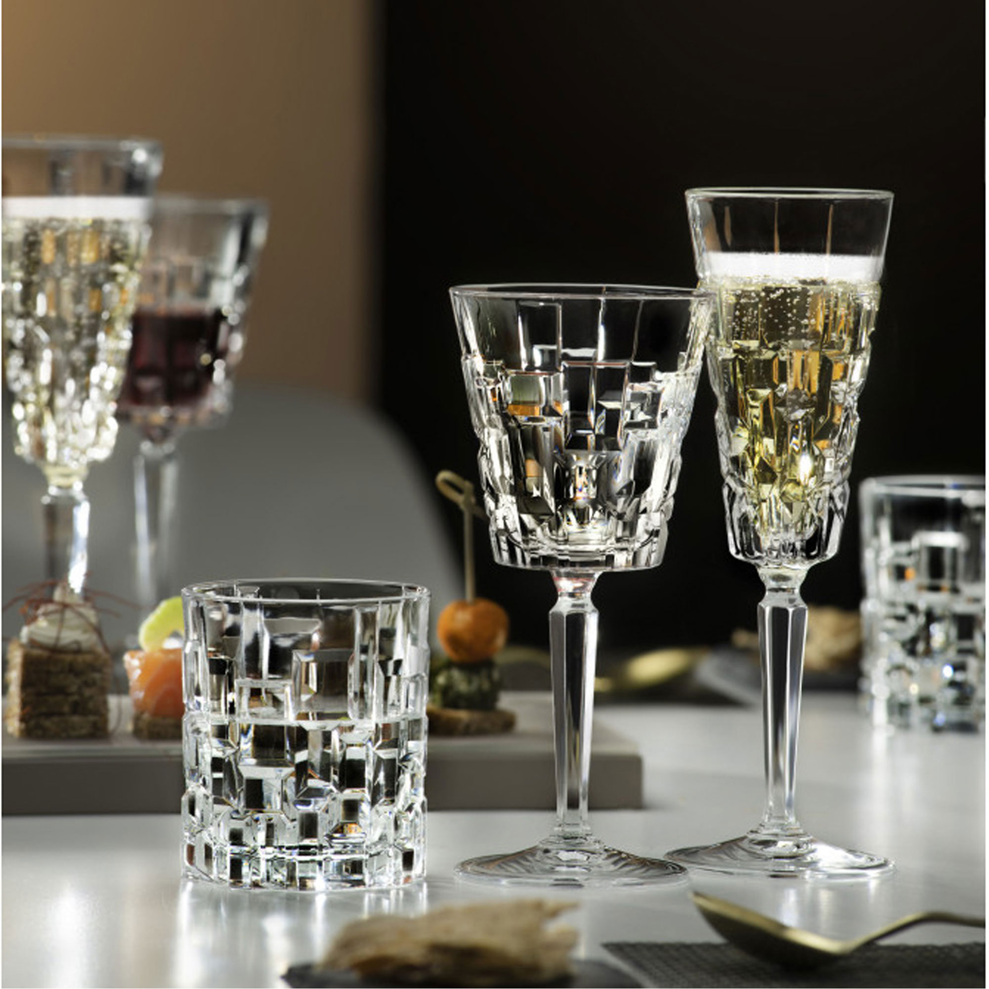 Inspired by the eruption of Etna, it sculpts the decorations of the glass. The light multiplies the cuts, enhancing the transparency of Luxion.