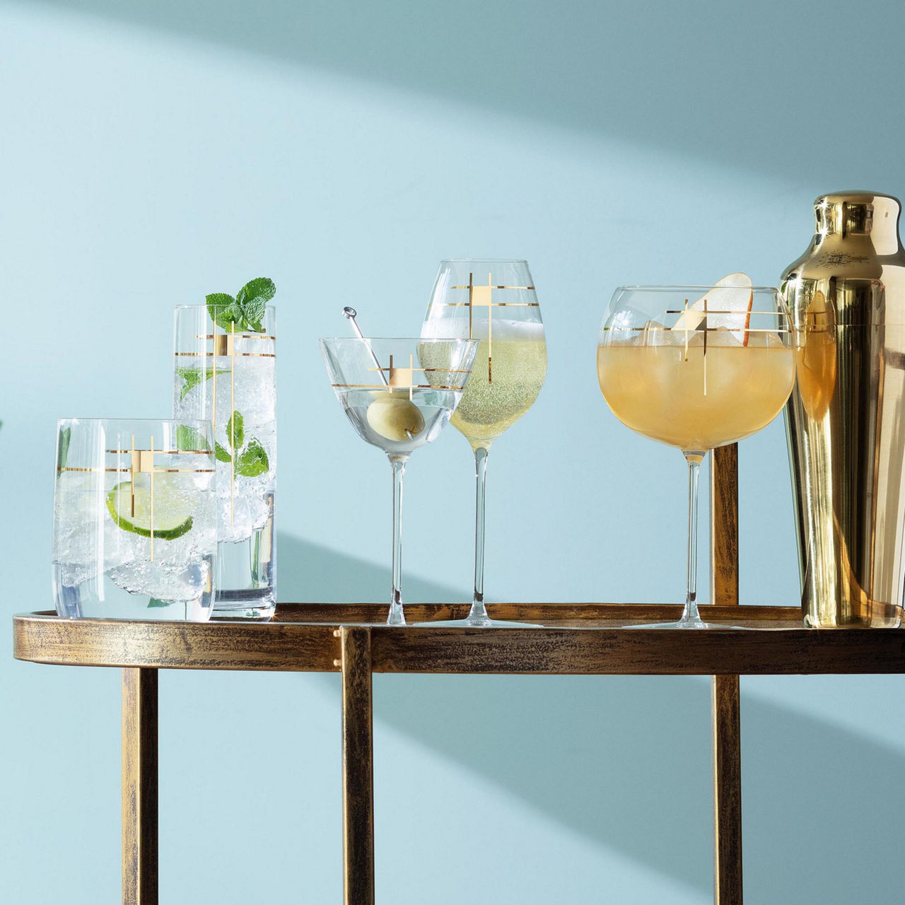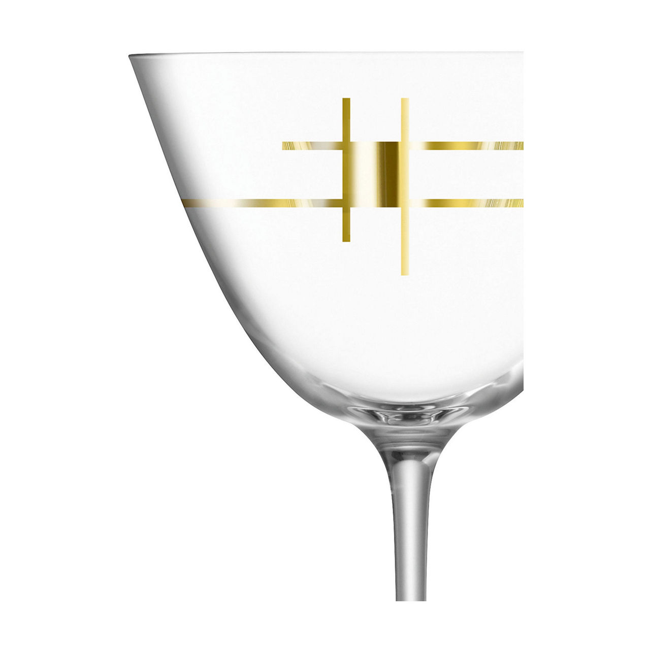 A contemporary martini glass, with an applied mid century gold graphic. Inspired by mid-century cocktail culture