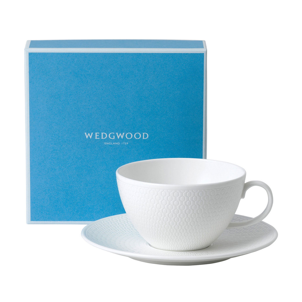 - Designed by Wedgwood Part of the Gio collection. Complete the set or mix and match with other Wedgwood collections for a unique look Our Bone China looks fantastic and provides superior strength White is the main colour of this item Featuring a beautiful Geometric, White, Embossed, Contemporary pattern Perfect to create a Contemporary and Modern, Minimalist look in your home Lovingly packaged in a beautiful Wedgwood presentation box