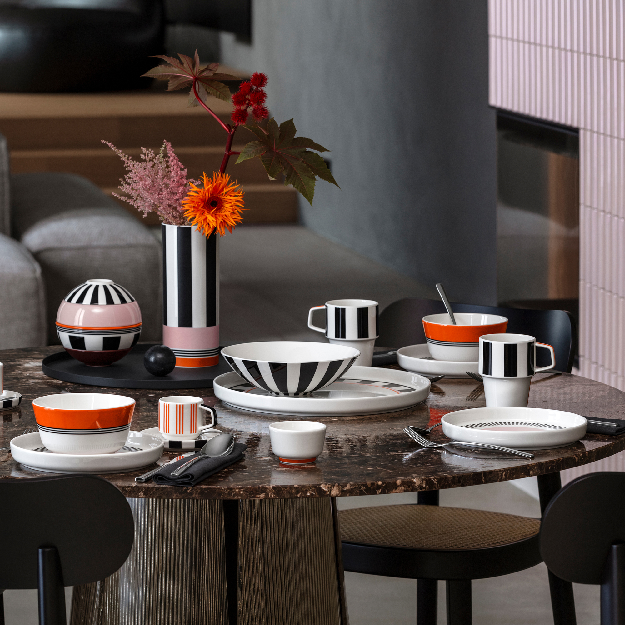 Memphis turns the table setting into a work of art. Inspired by the avant-garde Memphis design movement, it combines geometric shapes with vibrant colours to create a new take on tableware. A statement for stylish coffee enjoyment: The Memphis coffee mug from Villeroy & Boch combines dynamic patterns with striking colours. Its unusual shape ensures perfect drinking comfort, while the iconic design adds a visual highlight – a must-have for design aesthetes.