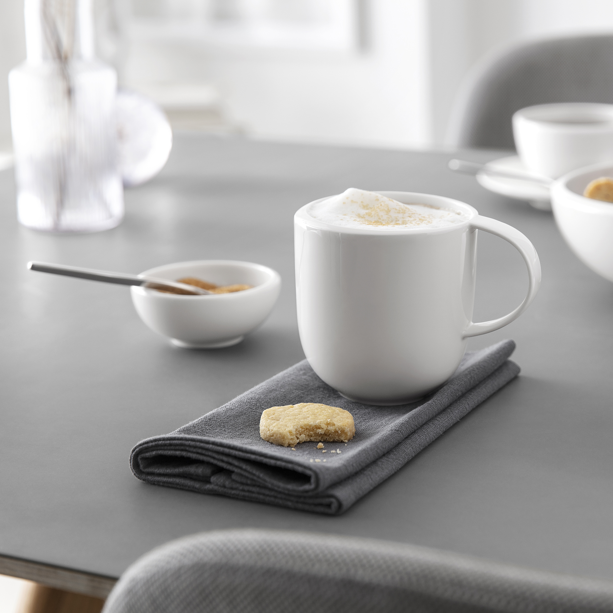 The NewMoon collection reflects the fascination of the moon. Influenced by the planet's gracefulness, the pared-down design creates slightly asymmetrical, puristic shapes. Whether hot chocolate, tasty tea or a large coffee – everything tastes so much better from this mug from Villeroy & Boch. Premium Porcelain. Dishwasher-safe and microwave-safe.