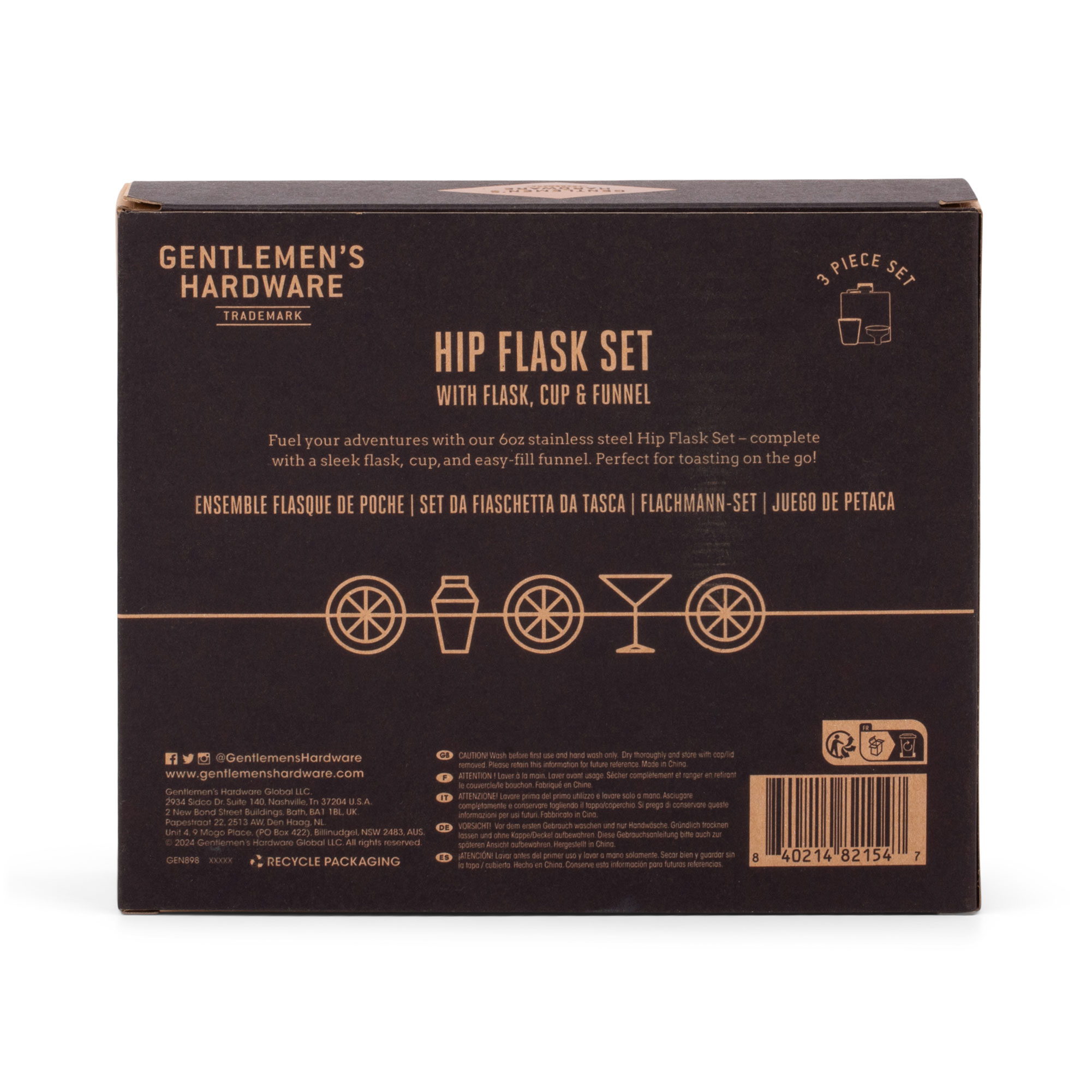 GENTLEMAN'S HARDWARE Stainless-steel Hip Flask Set