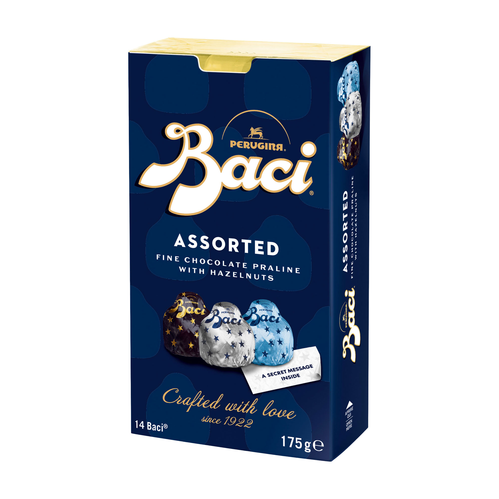 Born in Italy and loved around the world, Baci combines silky chocolate, whole hazelnuts, and a smooth gianduja heart in every iconic bite. Wrapped with a message of love and crafted with passion, Baci turns simple moments into sweet gestures.