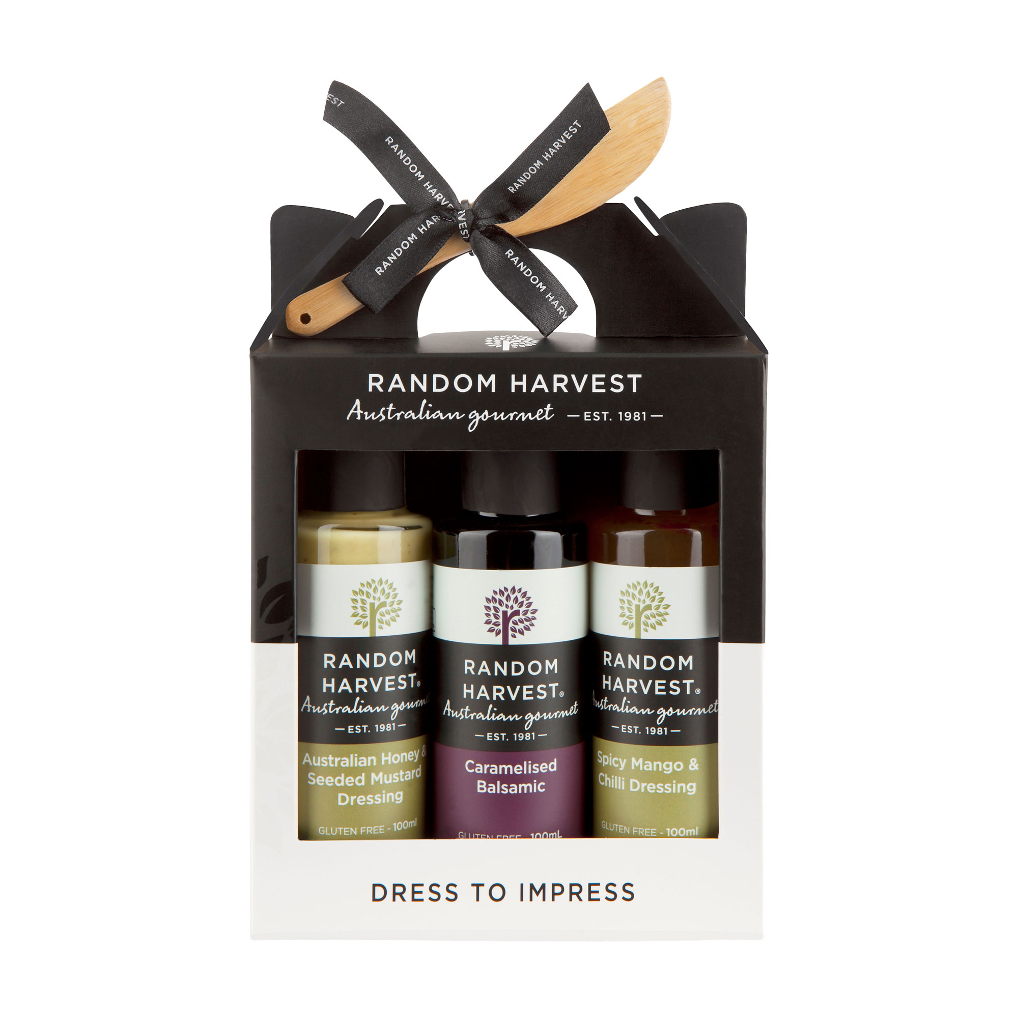 Our Dress To Impress Carry Case Gift Pack is the perfect gift for any occasion. This elegant set features a trio of premium Australian-made condiments designed to add bold and unique flavours to salads, marinades, and more. Beautifully presented in our signature 3 pack carry box, it makes a thoughtful and stylish gift for food lovers and entertainers alike.