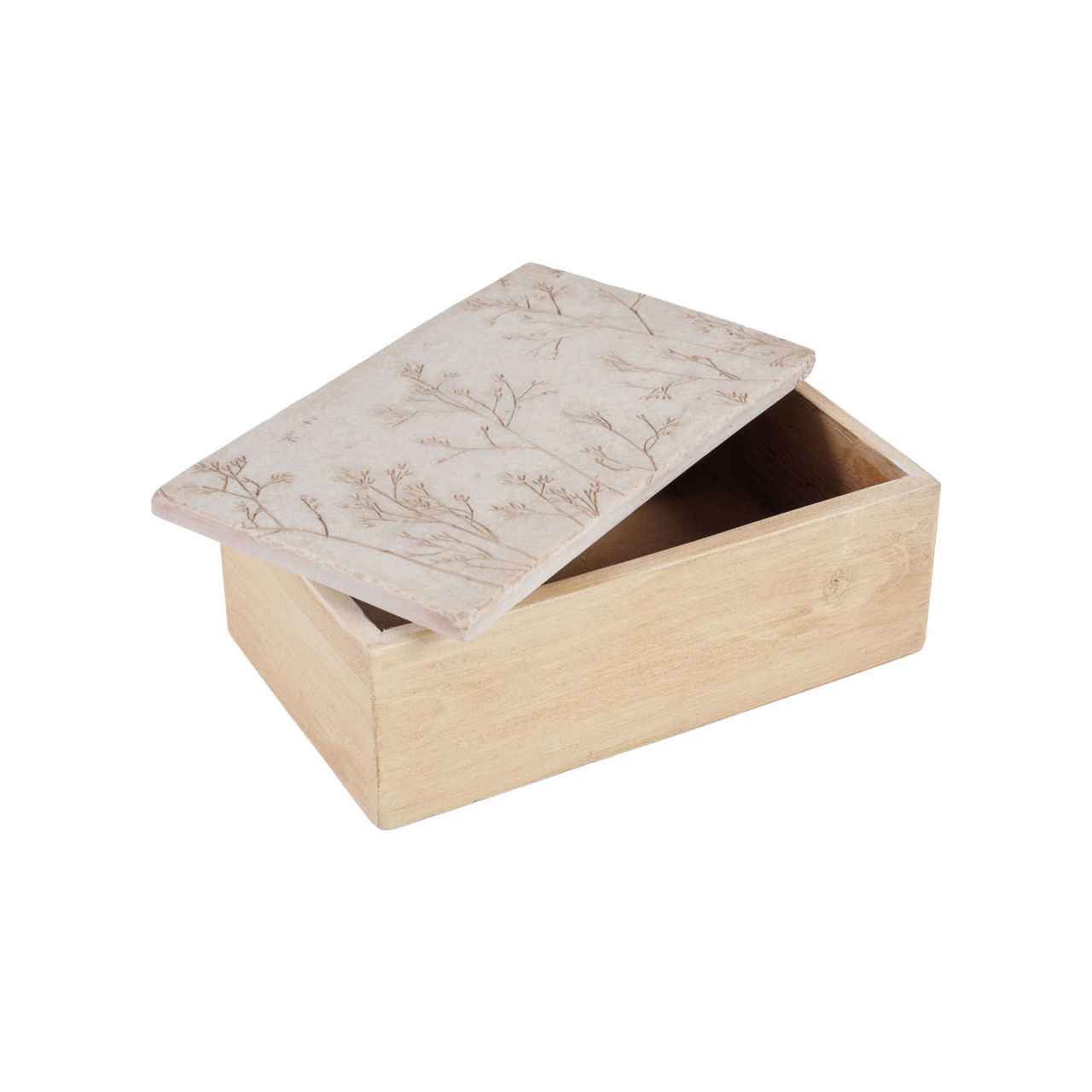 Elevate your decor with this decorative box from Mindy Brownes. Crafted with a wooden base and a delicately designed stone lid, this box adds a touch of elegance to any space. Featuring a beautiful floral pattern, it’s the perfect stylish storage solution for your home.