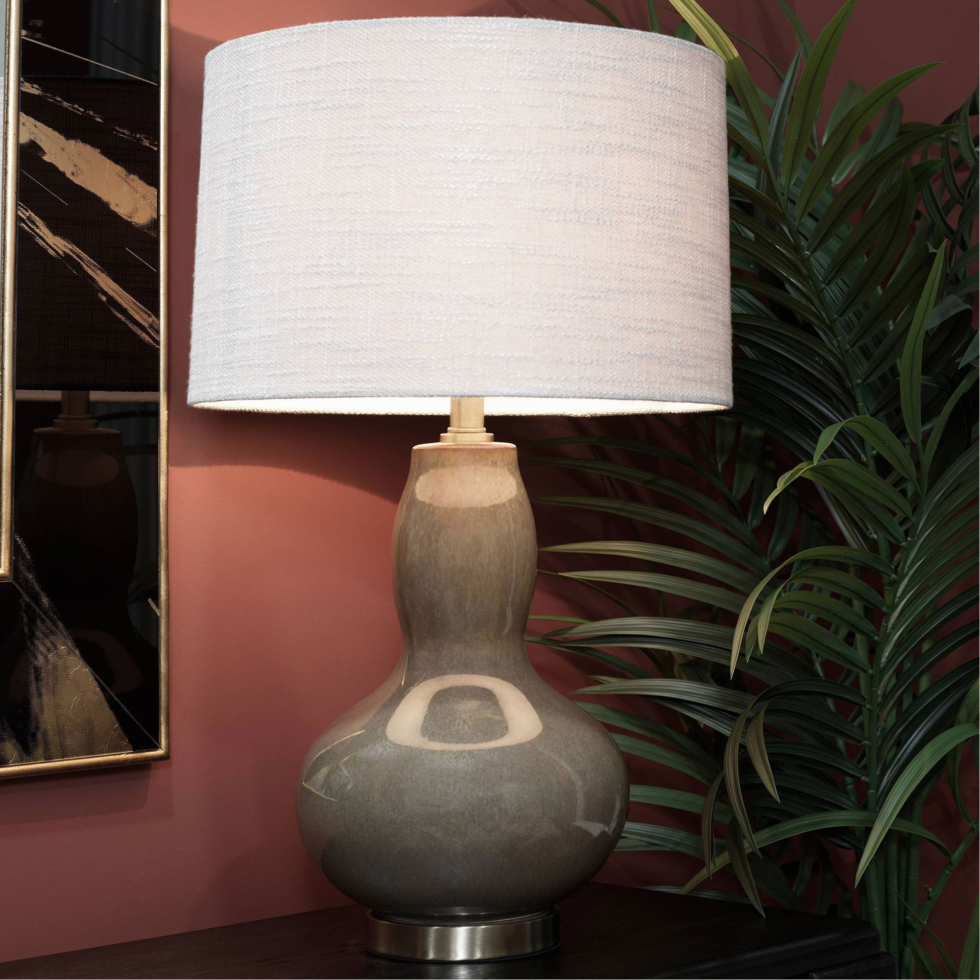 - Composition and Care: Ceramic, linen, brass. Wipe gently with a soft, dry cloth. Ensure the lamp is switched off and unplugged before cleaning. Avoid moisture, harsh chemicals, and abrasive materials. For indoor use only, keep away from direct heat sources or prolonged sunlight